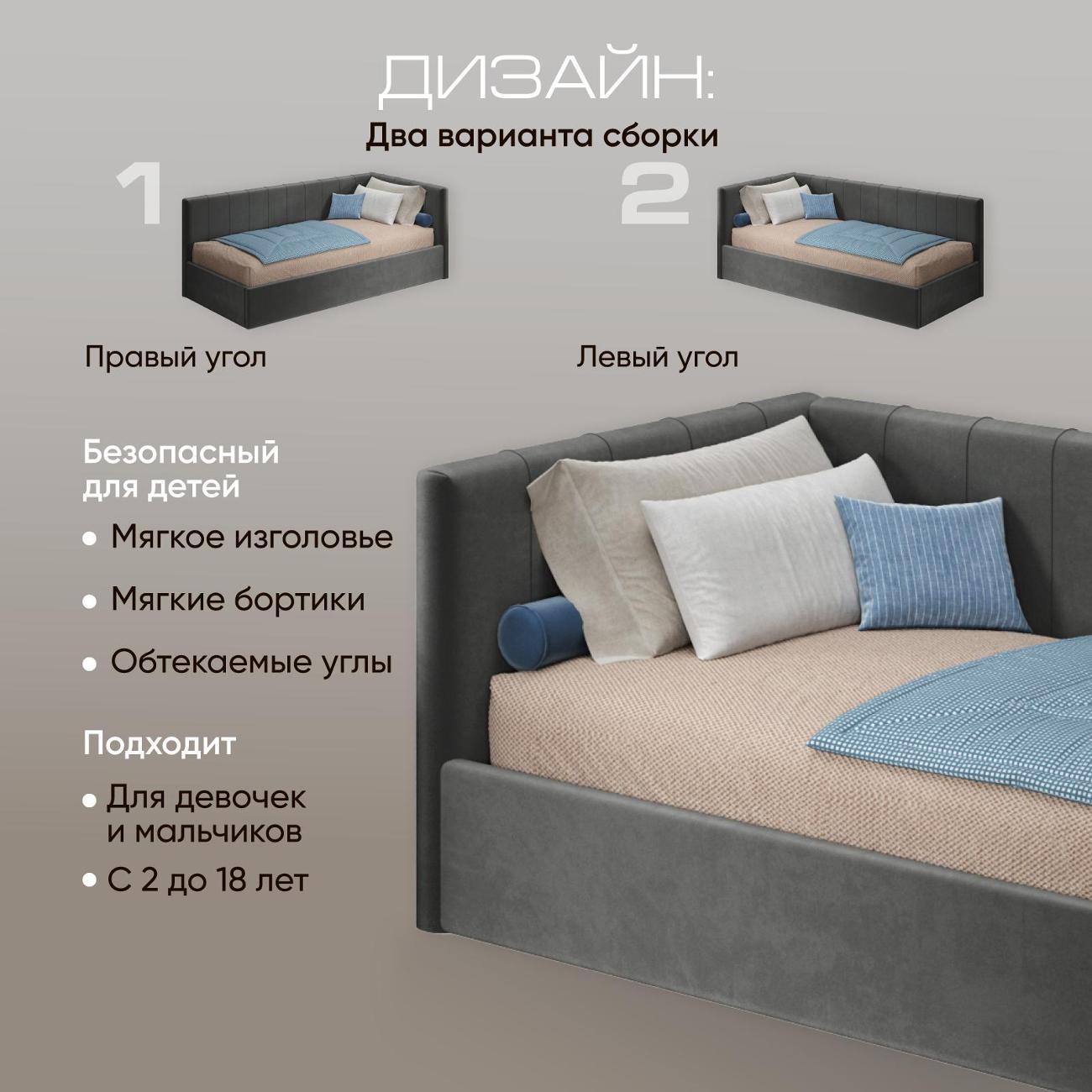 Односпальная евро кровать 90х200 см — современное решение для детской комнаты. Отличается лаконичным дизайном и функциональностью, подходит как для мальчика, так и для девочки. Подростковая мебель выполнена из ЛДСП, что обеспечивает прочность и долговечность. Мягкое изголовье и бортик обиты приятным на ощупь вельветом, создавая дополнительный комфорт при отдыхе или чтении. Спальное место рассчитано на нагрузку до 100 кг, поэтому модель подойдет не только детям, но и взрослым.