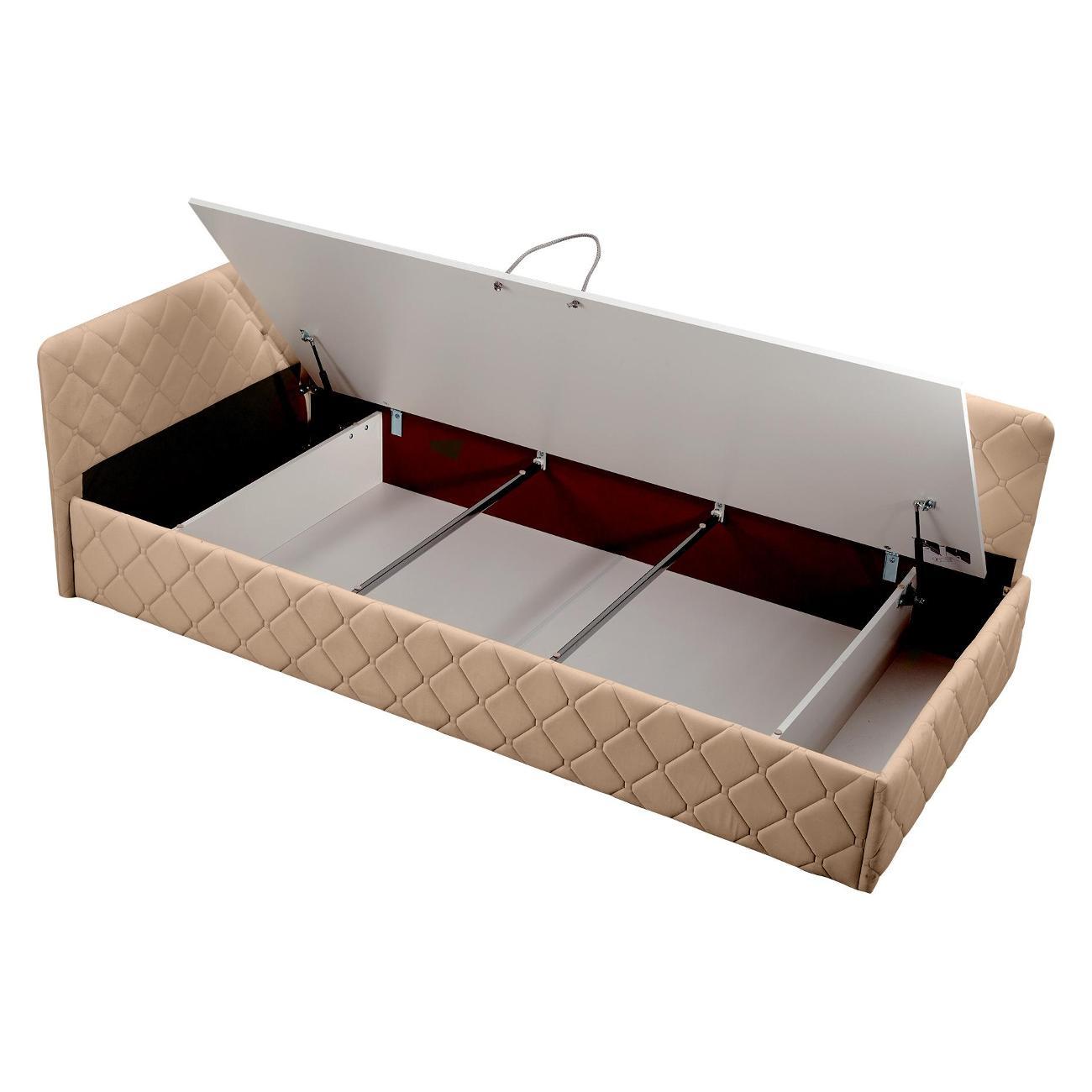 Одноместная кроватка с подъемным механизмом оснащена газлифтом — это удобно для легкого поднятия крышки короба и хранения постельных принадлежностей или других вещей под данным изделием. Дополнительные ящики обеспечивают порядок в комнате и позволяют рационально использовать пространство даже в небольшой спальне. Наш вариант гармонично впишется в любой интерьер благодаря универсальному оформлению, будь то лофт или модерн.