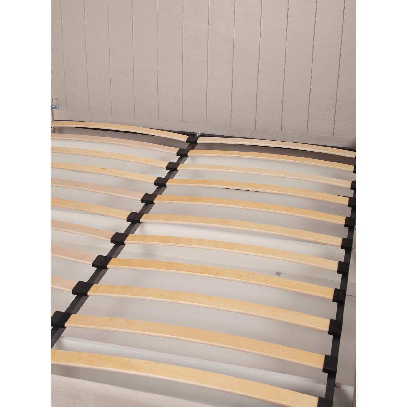 Двуспальная парящая кровать 140x200 с мягким изголовьем идеально подходит для взрослой спальни и обеспечивает комфортный сон. Основание выполнено из ламелей, что гарантирует ортопедическую поддержку и амортизацию. Каркас изготовлен из ЛДСП — прочного материала, придающего надежность конструкции без классических ножек. Подъемный механизм позволяет легко поднимать основание кровати, где расположены вместительные ящики для хранения вещей. Максимальная нагрузка на мебель составляет 200 кг, делая ее устойчивой и безопасной в использовании для людей разной комплекции.