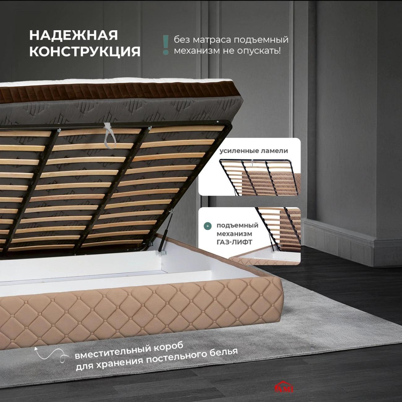 Двуспальная кровать 180x200 с мягким изголовьем идеально подходит для взрослой спальни и обеспечивает комфортный сон. Основание выполнено из ламелей, что гарантирует ортопедическую поддержку и амортизацию. Каркас изготовлен из ЛДСП — прочного материала, придающего надежность конструкции без ножек. Подъемный механизм позволяет легко поднимать основание кровати, где расположены вместительные ящики для хранения вещей. Максимальная нагрузка на мебель составляет 200 кг, делая ее устойчивой и безопасной в использовании для людей разной комплекции.