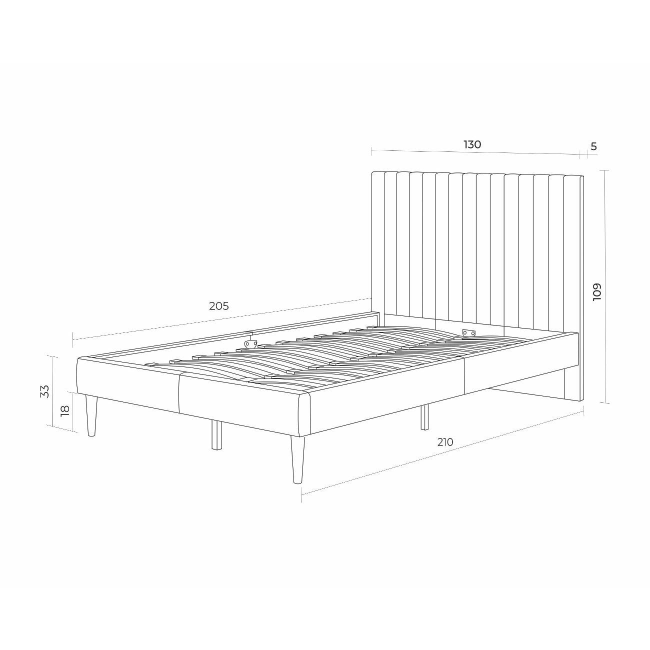 Полутораспальная кровать на ножках АММА 120х200 - уютное решение для вашей спальной комнаты. Высокое мягкое изголовье из велюра создаст теплую атмосферу в помещении, добавит удобства и комфорта при чтении книги, просмотре ТВ или ""сёрфинге"" в смартфоне. Вертикальная отстрочка добавит классические нотки в дизайн вашей комнаты. Высокие ножки 18 см позволят легко совершать сухую и влажную уборку, в том числе при помощи робот-пылесоса.В комплект входит каркас с изголовьем и реечное основание. Изделие упаковано в одну коробку, которая легко поместится на заднее сиденье легкового автомобиля.Мягкую 1,5 спальную кровать АММА можно использовать как подростковую или детскую. Благодаря приятным универсальным оттенкам полуторка подойдет в спальню для девочки или для мальчика от 7 лет, а также для подростков. Дополните полуторную напольную кровать банкеткой, пуфом, креслом или диваном из коллекции АММА и получите готовое дизайнерское решение для вашего помещения!