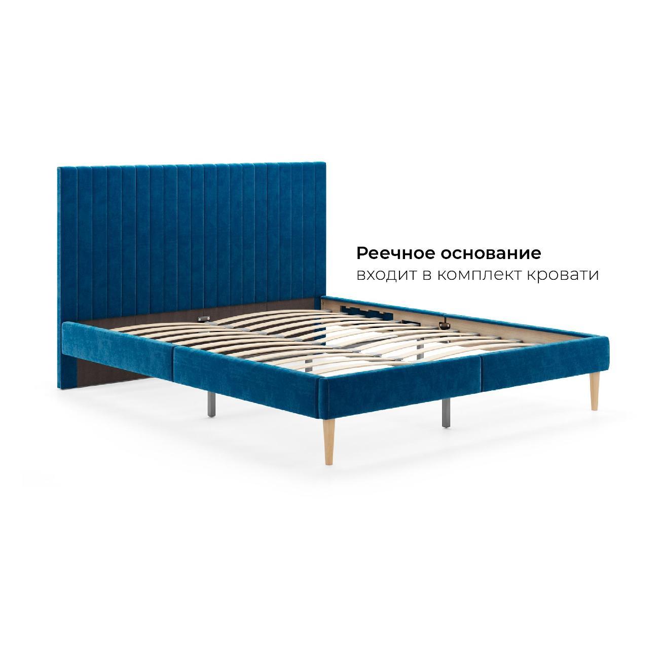 Двуспальная мягкая кровать на ножках АММА 140х200 - уютное решение для вашей спальной комнаты. Высокое мягкое изголовье из велюра создаст теплую атмосферу в помещении, добавит удобства и комфорта при чтении книги, просмотре ТВ или ""сёрфинге"" в смартфоне. Деревянная двухместная кровать выполнена в стиле икеа. Вертикальная отстрочка добавит классические нотки в дизайн вашей комнаты. Высокие ножки 18 см позволят легко совершать сухую и влажную уборку, в том числе при помощи робот-пылесоса.В комплект входит каркас с изголовьем и реечное основание. Купить кровать и забрать ее из пункта выдачи - легко! Изделие упаковано в одну коробку, которая легко поместится на заднее сиденье легкового автомобиля. Дополните двухспальную напольную кровать банкеткой, пуфом, креслом или диваном из коллекции АММА и получите готовое дизайнерское решение для вашего помещения!