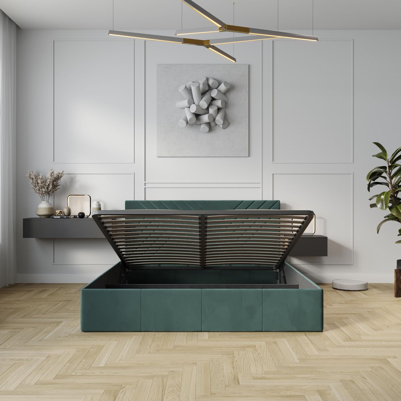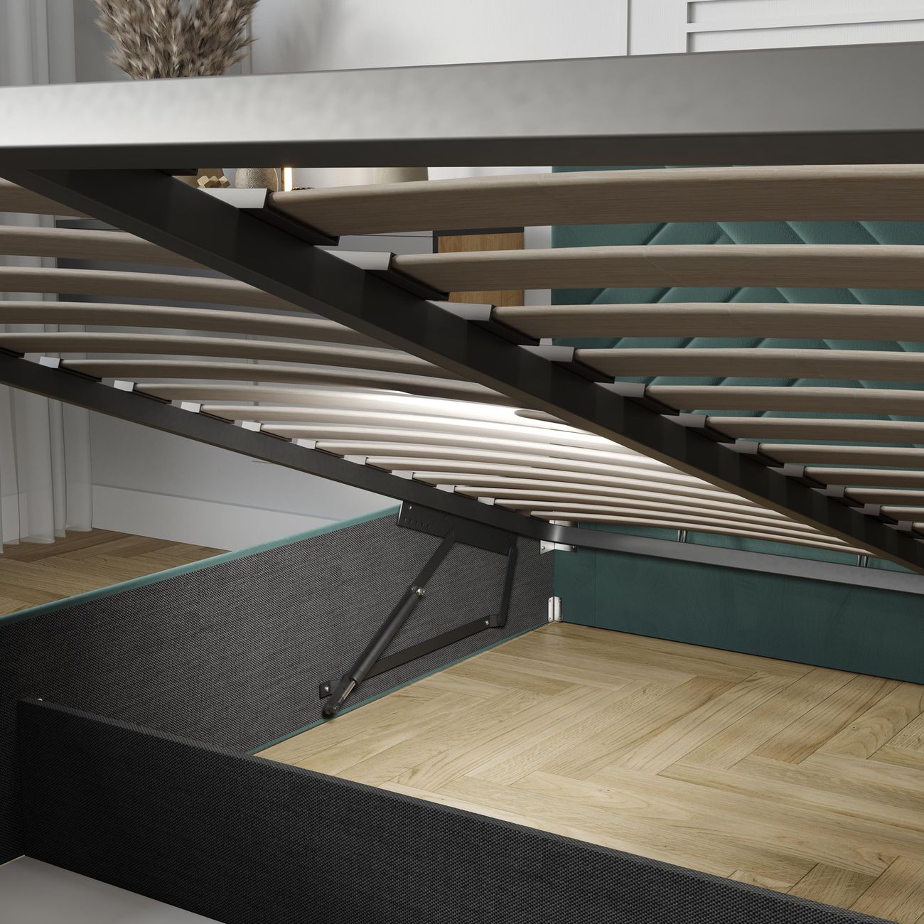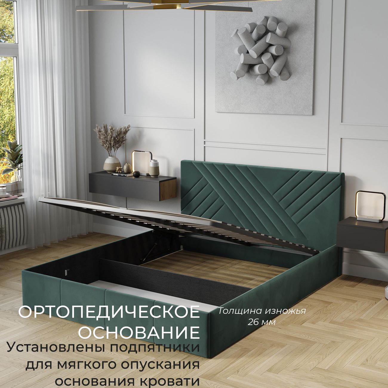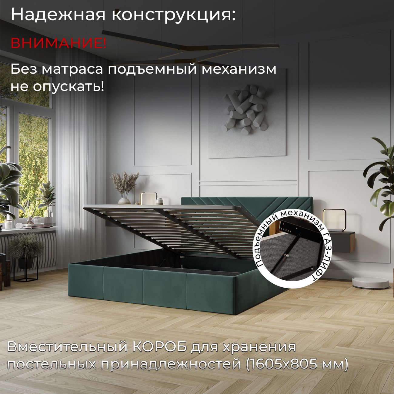 Удобно что внутри кровати есть много места для хранения постельных принадлежностей. Я туда сложила все одеяла и подушки которые у нас лежат на случай гостей. И удобно то что подъемный механизм легко поднимается и опускается когда мне нужно что-то достать или положить