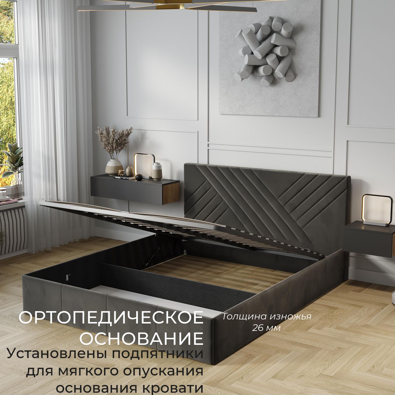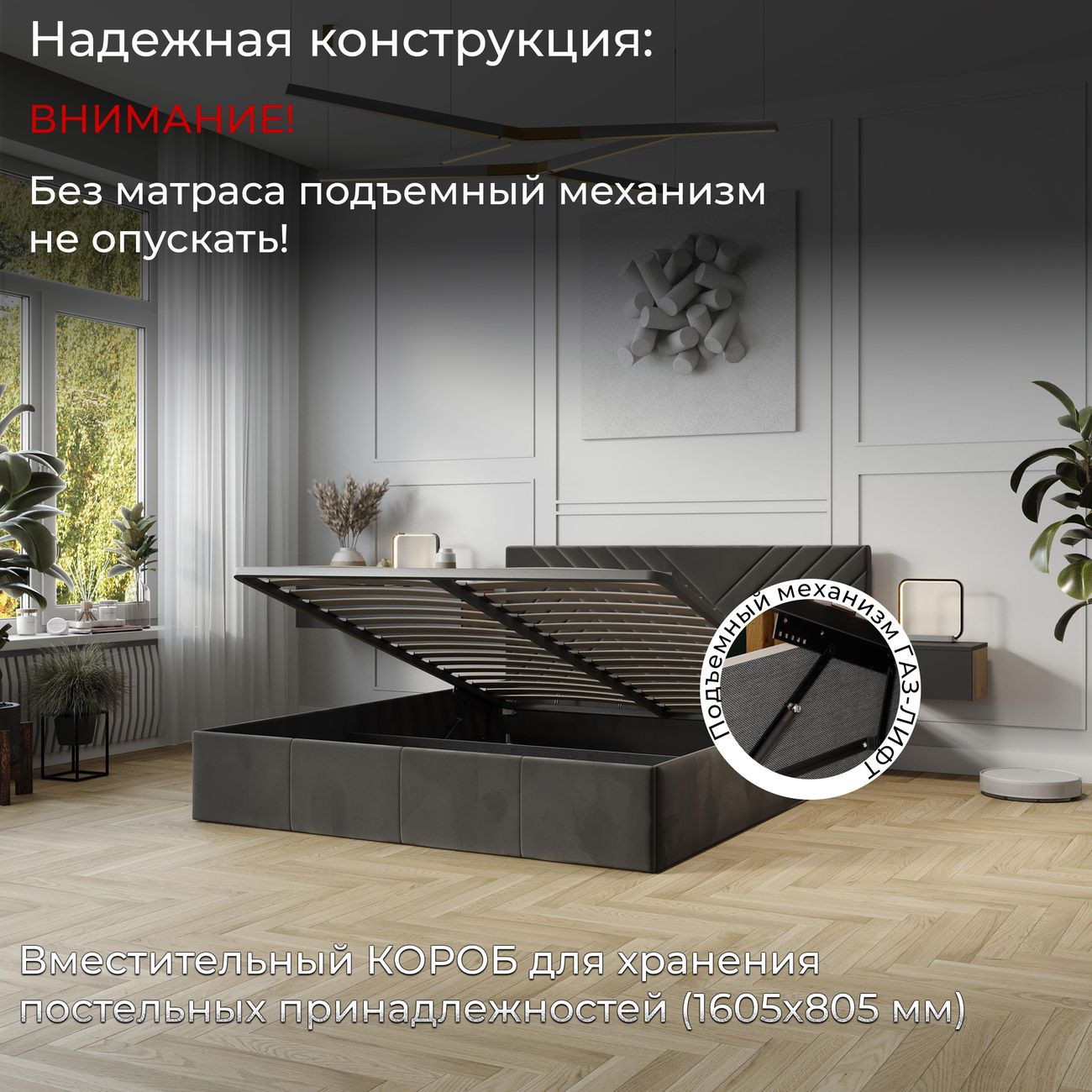 Двуспальная кровать от бренда ТриЯ "Дэлли" с размерами 160х200 см и подъемным механизмом станет отличным выбором для тех, кто ценит комфорт и функциональность. Кровать выполнена в коричневом цвете, который легко впишется в любой интерьер. Обивка из велюра Confetti Stone придает кровати изысканный вид и обеспечивает мягкость и комфорт при использовании. Каркас кровати изготовлен из ДСП, что гарантирует прочность и долговечность конструкции. Высота изголовья составляет 89 см, что обеспечивает удобное расположение головы во время отдыха. Высота спального места составляет 29 см, что позволяет комфортно разместиться на кровати. Особенностью данной модели является мягкое изголовье, которое добавляет уют и комфорт. Кровать оснащена подъемным механизмом, что позволяет экономить пространство в комнате и обеспечивает легкий доступ к ящикам для хранения. В комплектацию кровати входят каркасы, спинка и заглушина, кроватное основание с ПМ, пакет с фурнитурой и инструкция по сборке. Максимальная нагрузка на кровать составляет 240 кг (на одно спальное место -120 кг), что позволяет использовать ее для людей разного телосложения. Дополнительная информация Проверять работоспособность газлифта руками не стоит, так как исправное приспособление не должно сжиматься. А если оно сожмется от усилия рук, то значит оно сломано. Газовая пружина не может просто двигаться под действием усилия рук. Механизм нельзя подвергать ударам, разрезать или нагревать цилиндр – внутри высокое давление и это может быть опасно для здоровья. В комплекте идет только одна заглушина для пола (дно ящика), которая находится у изножья кровати. У изголовья заглушина для пола отсутствует. ВНИМАНИЕ! Оттенки на мониторе могут отличаться от реальных цветов! Цвет материала может отличаться по тону в зависимости от настроек вашего монитора! Указанные расхождения в цвете не являются браком. Необходимо убедиться в качестве и количестве всех деталей - не приступая к сборке! В случае обнаружения каких-либо проблем - необходимо связываться с продавцом для решения проблемы, не приступая к сборке! После сборки - товар возврату и обмену не подлежит!