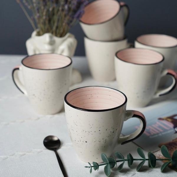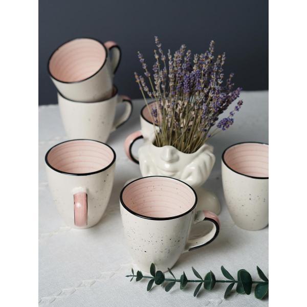 Ищете смелое и стильное решение для сервировки? Этот набор из шести керамических кружек для чая объемом 400 мл создан для ценителей индустриальной эстетики. Сочетание белого фона с эффектными черными брызгами снаружи и неожиданного розового «всплеска» внутри делает каждую чашку уникальным арт-объектом. Практичные, вместительные и абсолютно функциональные — они идеально впишутся в интерьер в стиле лофт, сканди или минимализм.