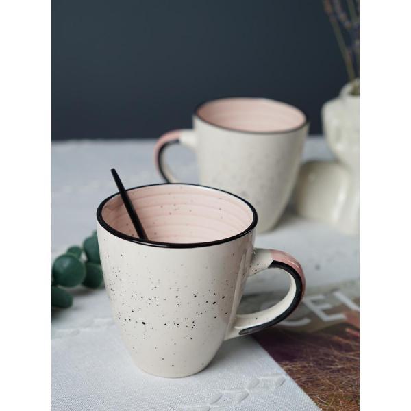 Эти кружки — больше, чем просто посуда. Это выражение характера. Внешняя поверхность напоминает бетонную стену с графити: классический белый фон контрастирует с динамичными черными брызгами. Неожиданный и свежий акцент — насыщенная розовая внутренняя поверхность, которая радует глаз каждый раз, когда вы допиваете напиток. Такой дизайн добавляет изюминку любому столу и станет отличной темой для разговора.