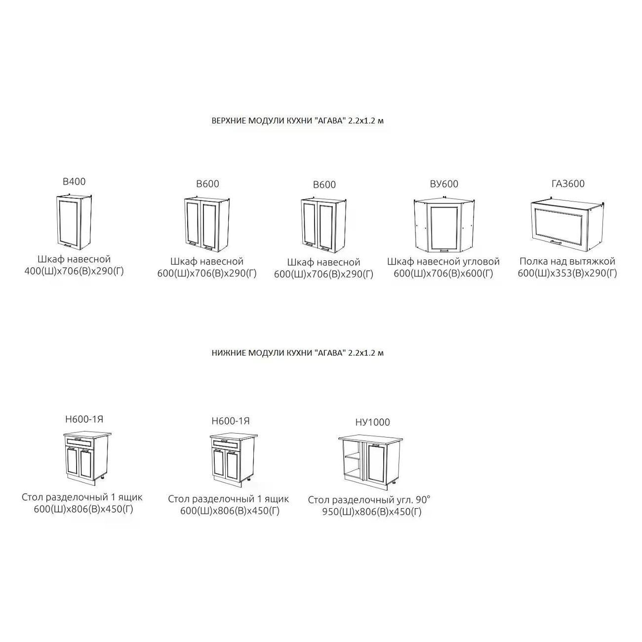 Кухонный гарнитур ЭРА Агава 2.2х1.2 м - это стильный и функциональный выбор для вашей кухни.