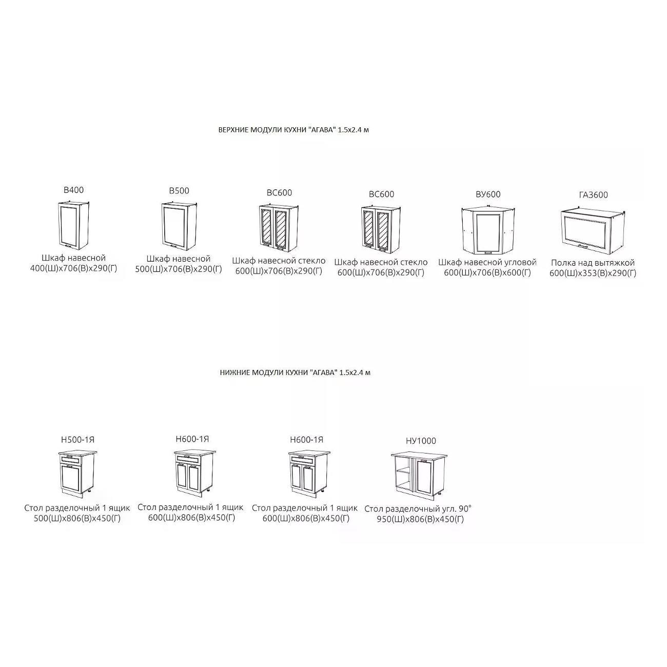 Кухонный гарнитур ЭРА Агава 1.5x2.4 м - это стильный и функциональный выбор для вашей кухни.
