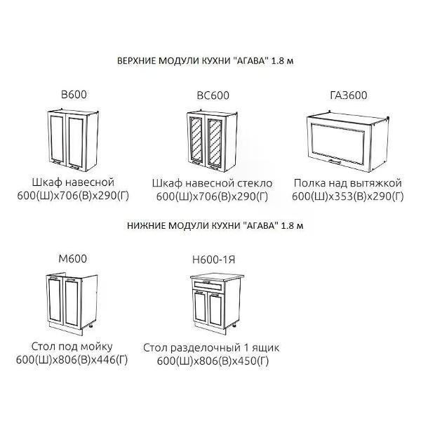 Кухонный гарнитур ЭРА Агава Без Столешницы 1.8 м - это стильный и функциональный выбор для вашей кухни.