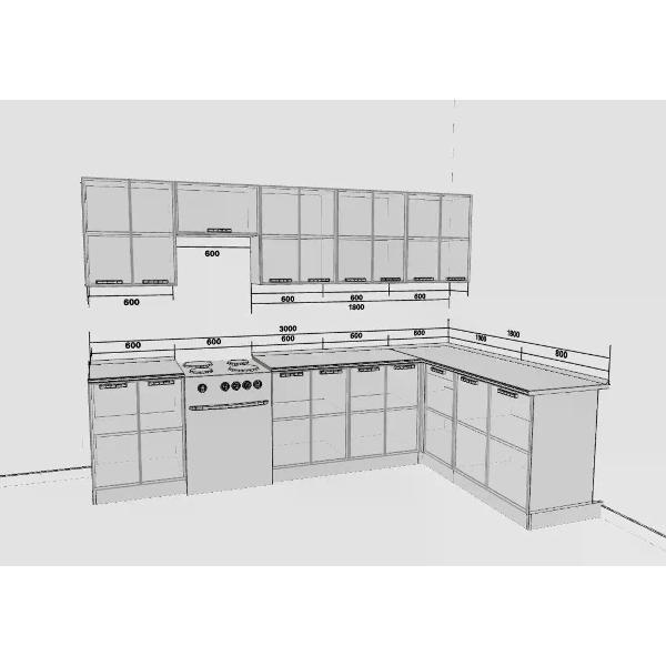 Угловой кухонный гарнитур ЭРА Брауни Без Столешницы 300X180 см - это стильный и функциональный выбор для вашей кухни.