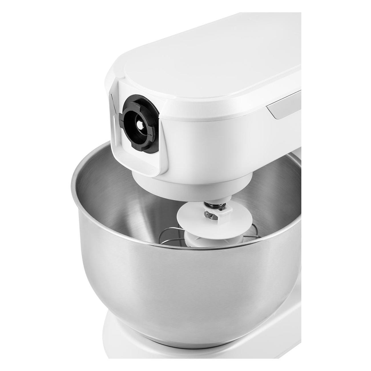 Тесто хорошо замешивает, даже с плотным отлично справляется. Что нравится, можно дополнительные насадки поставить (они отдельно докупаются). Мощность высокая, скорость поворотной кнопкой регулируется.