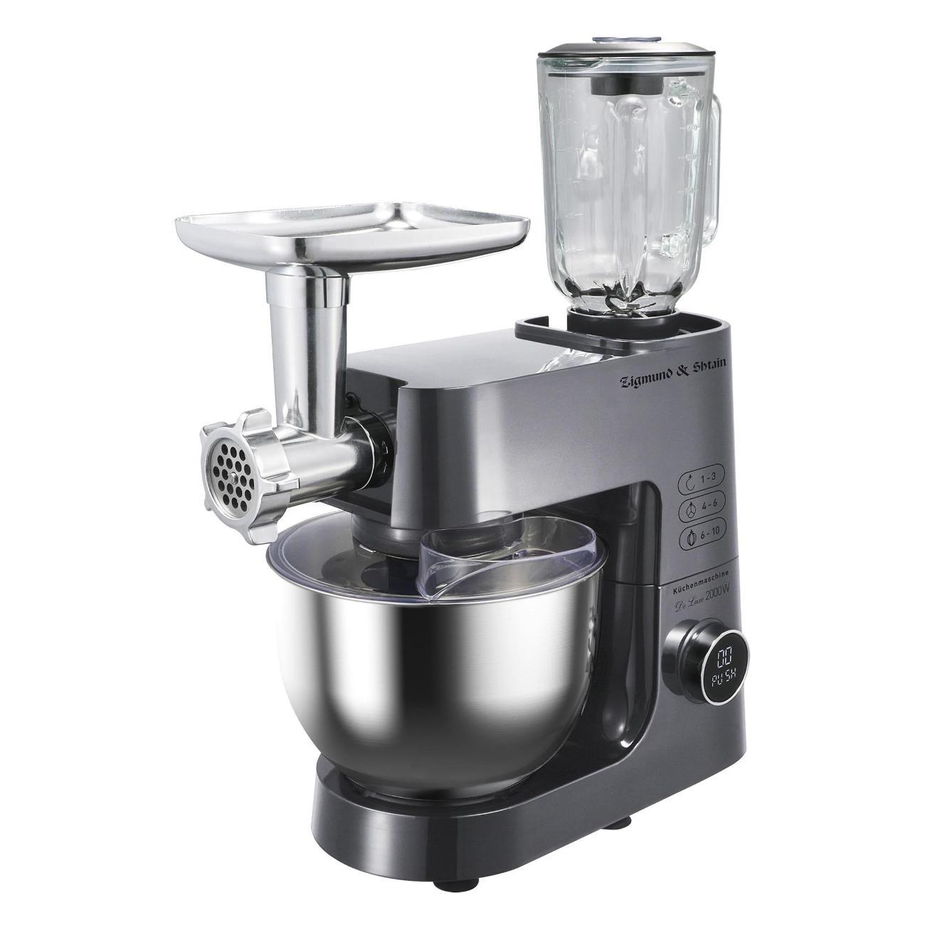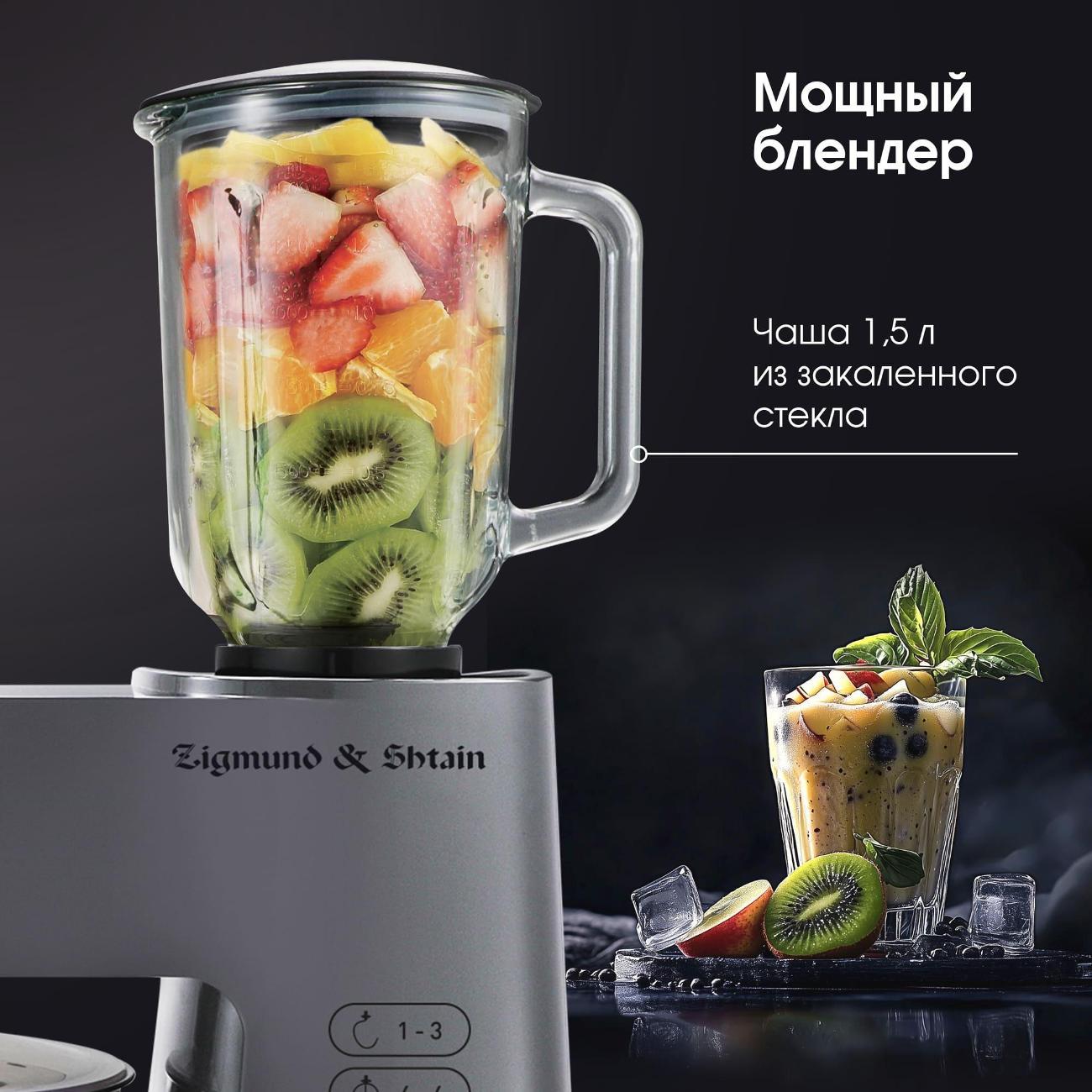 Кухонный комбайн Zigmund & Shtain De Luxe ZKM-984 в серебристом цвете поможет без лишних усилий приготовить тесто, в том числе тугое, измельчить и смешать ингредиенты для различных блюд. Корпус устройства выполнен из пластика. Интегрированные прорезиненные ножки не позволяют конструкции скользить по столу.