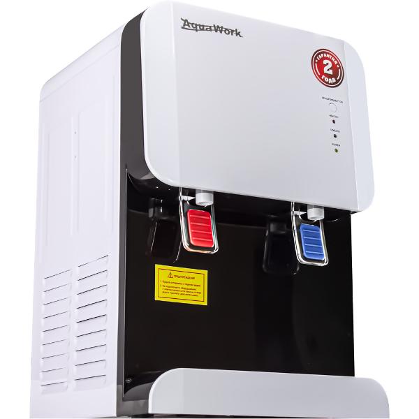 Кулер Aqua Work 105-TDR раздает холодную и горячую воду. Модель использует электронную систему охлаждения. За час кулер способен нагреть 7 л и охладить до пяти стаканов воды. На корпусе можно закрепить стаканодержатели (в комплекте не поставляются) — на шурупах или на магнитах. Принудительный нагрев включается с кнопки.