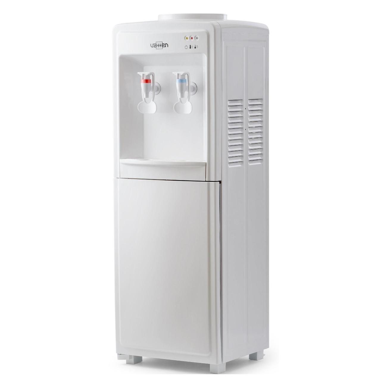 Кулер Vatten V09WF оборудован тремя кранами. Модель предназначена для установки на полу. Прибор нагревает жидкость до 95°С и производит 6 литров в час горячей воды. Мощность нагревания составляет 650 Вт. Изделие охлаждает 0,6 литров в час до 14°С. Конструкция оснащена лотком для сбора капель, который снимается. У устройства установлена индикация включения, нагревания и охлаждения. Бак горячей воды выполнен из нержавеющей стали, холодной сделан из пластика. Габаритные размеры: 980х310х340 см. Вес — 6,95 кг.
