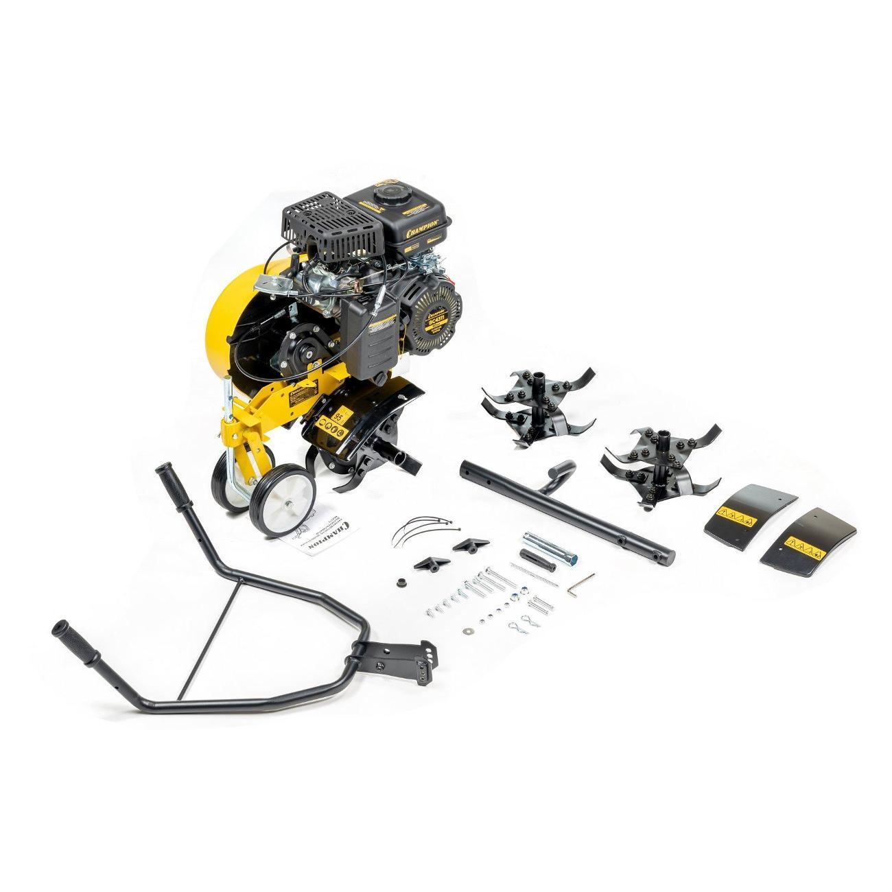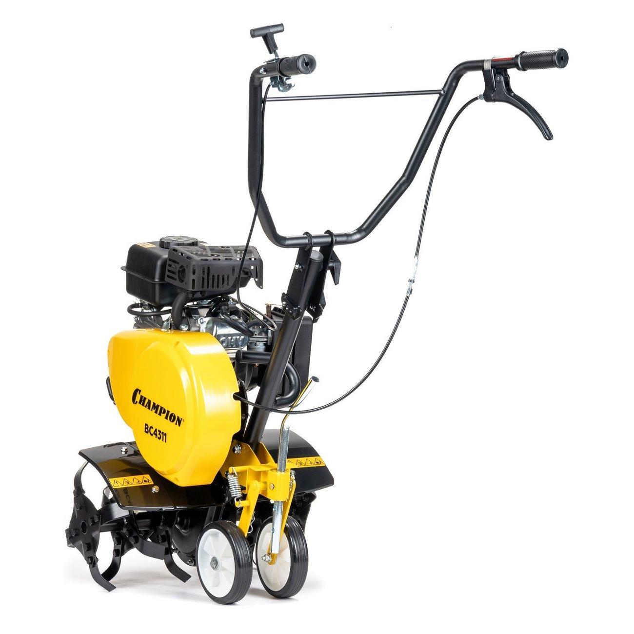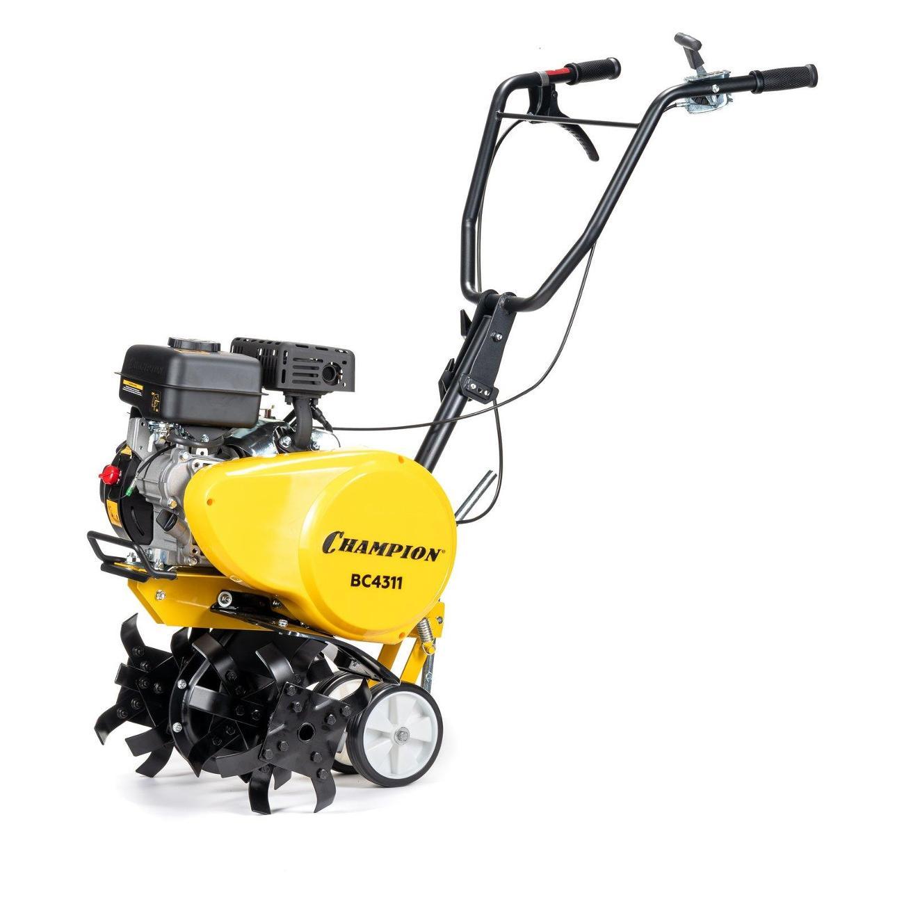 Мотокультиватор Champion BC4311 предназначен для рыхления почвы. Уничтожает сорняки и обогащает почву кислородом. Имеет три варианта ширины вспашки: 20, 35 и 43 см. Оснащен мощным 4-х тактным двигателем воздушного охлаждения. Фрезы вращаются со скоростью 180 об/мин. Транспортировочные колеса обеспечивают удобное перемещение агрегата по участку. Топливный бак имеет большую горловину, что облегчает заливку топлива.