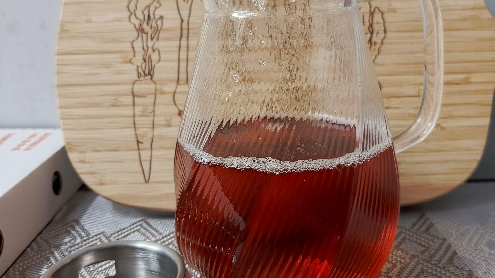 Удобная ручка, сам не тяжёлый. У пробки есть два варианта отверстия для слива, на кувшине держится крепко, если перевернуть не вывалится. Заваривать можно как горячий чай так и холодные компоты. Запах не впитывает. За счет этой пробки никакой мусор или ягоды в стакан не попадают. Легко мыть, моя рука пролазит внутрь него, что тоже большой плюс)