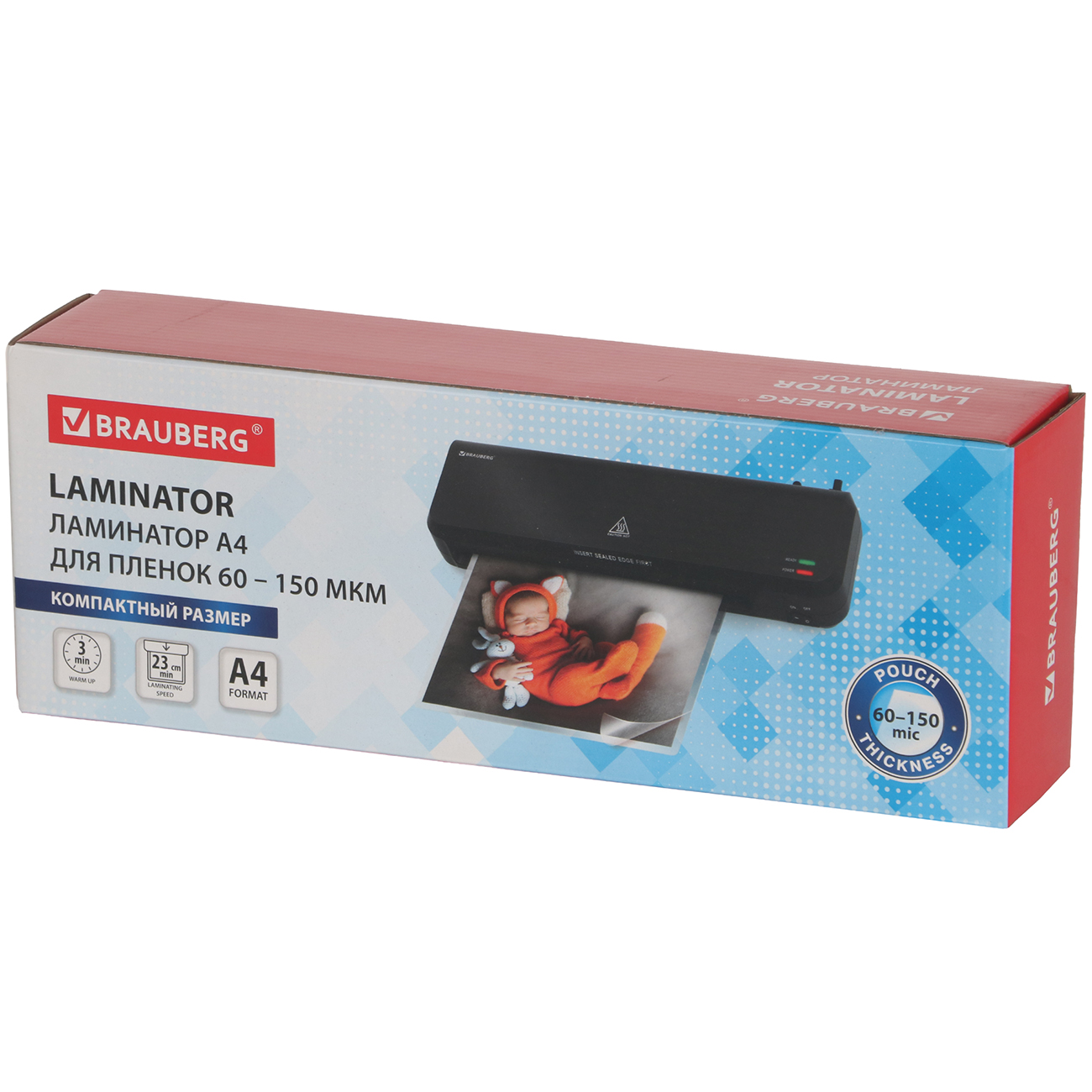 Пакетный ламинатор Brauberg Nano Plus (532621) формата А4 с двумя нагревательными валами поддерживает функцию горячего ламинирования и работает с пленкой толщиной от 10 до 150 мкм. Совместимая толщина обрабатываемых носителей (карточек, бумажных листов, фотографий) — до 0,6 мм. Время нагрева устройства составляет 3 минуты. Средняя скорость ламинирования — 23 см в минуту.