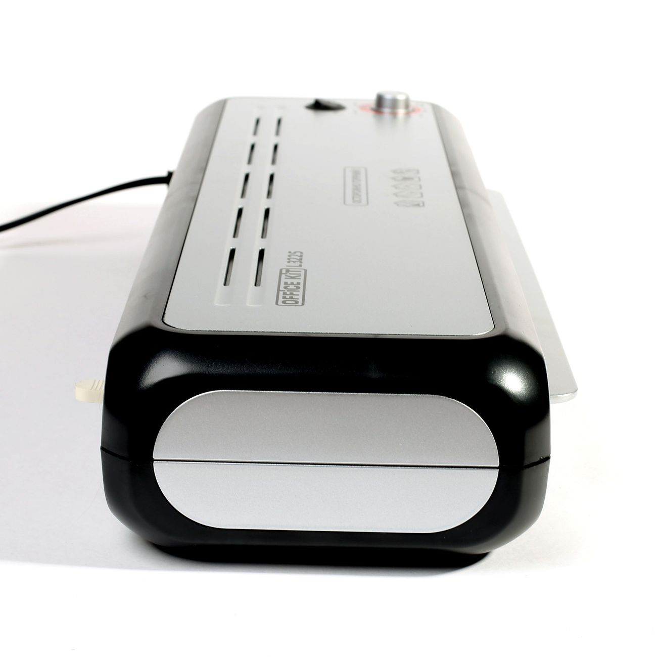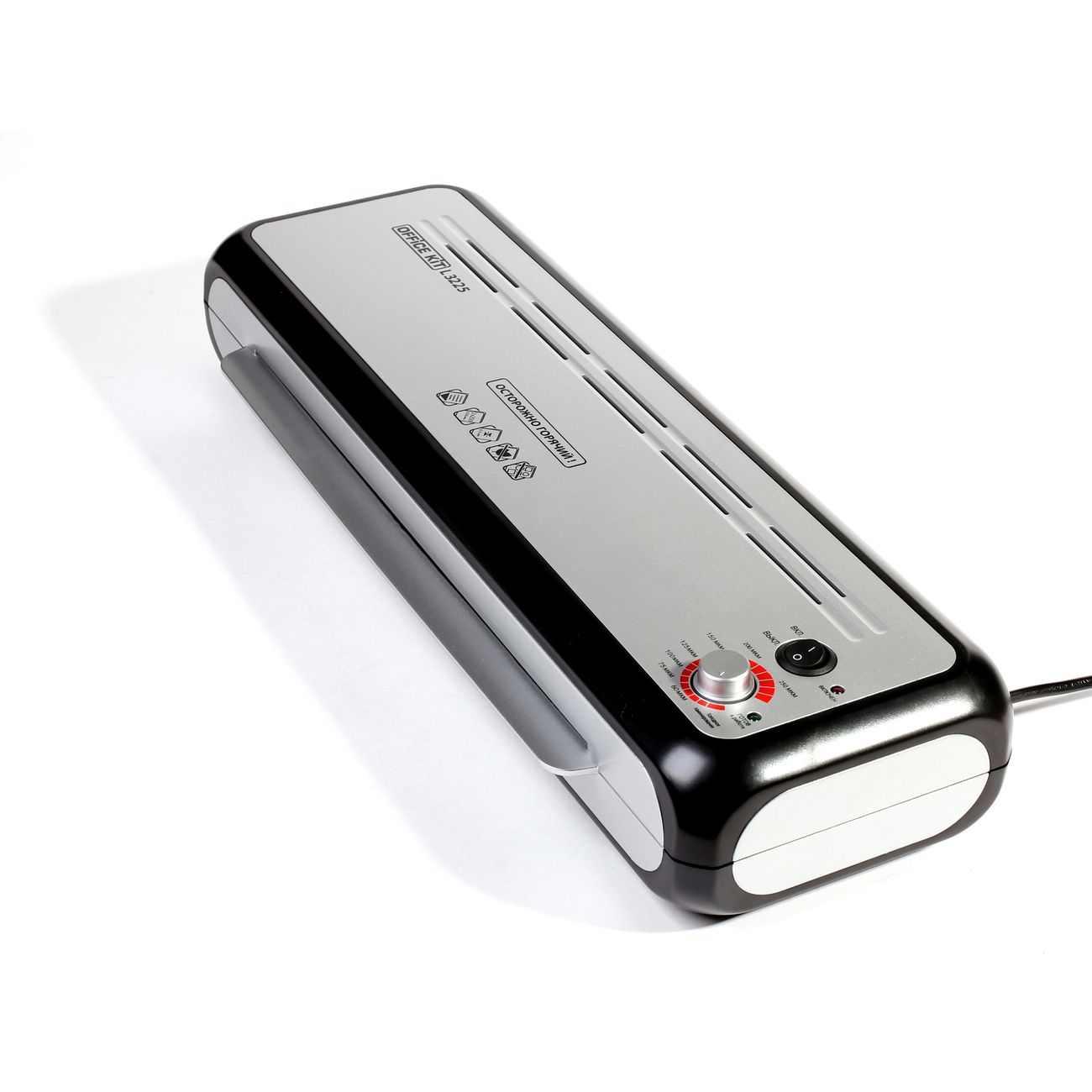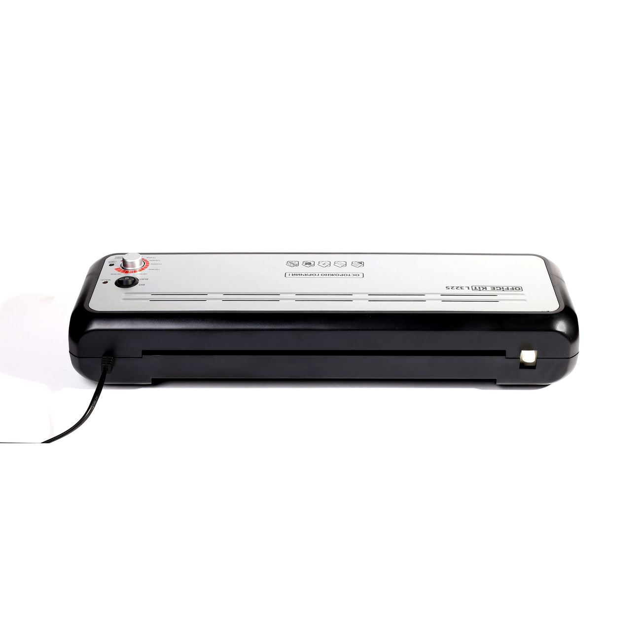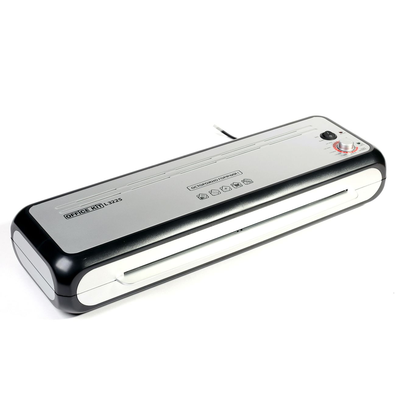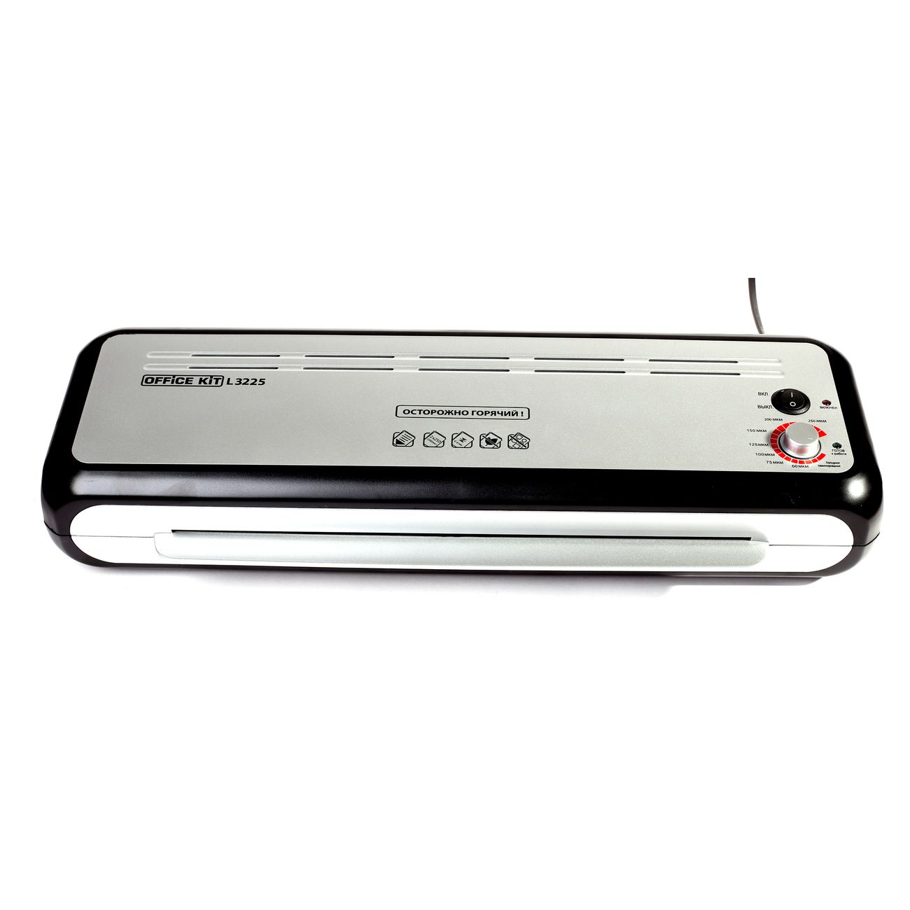 Ламинатор Office Kit L3225 обладает компактными габаритами — 49 х 18 х 8,5 см. Скорость работы — 375 мм/мин. Предустановлено два режима: горячий и холодный. Максимальный поддерживаемый формат — А3. Управление ручное. Совместим с толщиной пленки до 250 мкм. Предусмотрен световой индикатор и система извлечения бумаги в случае замятия. Нагревается за 5 минут.