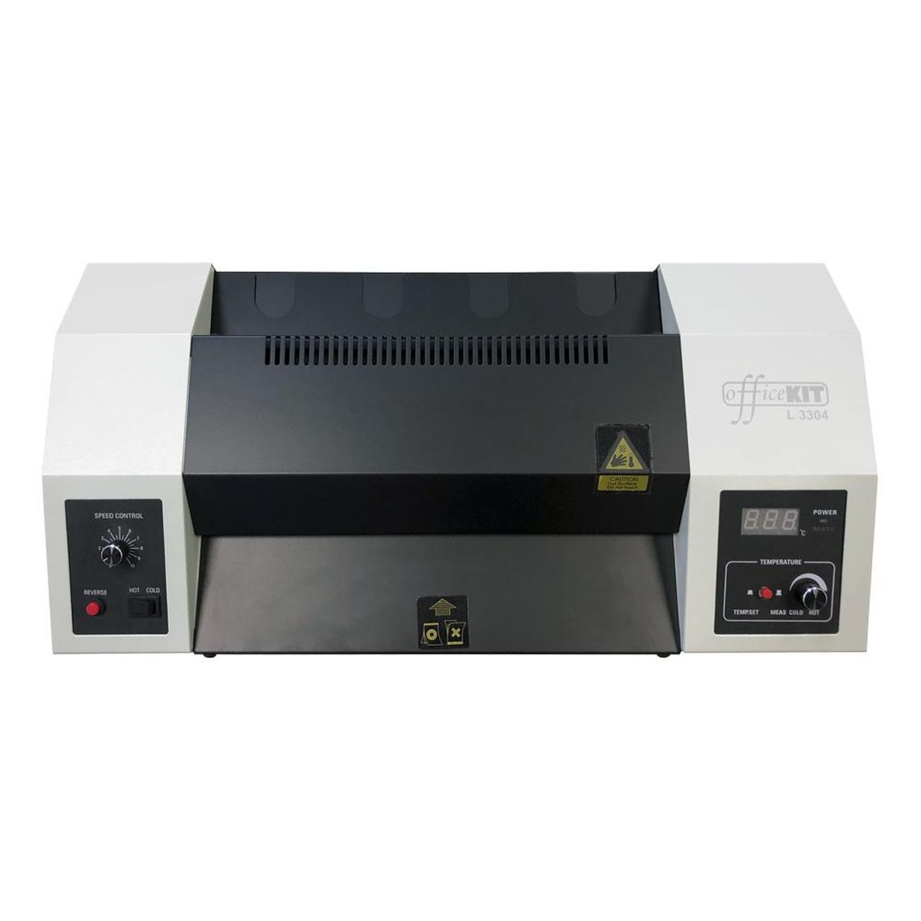 Ламинатор Office Kit L3304 обладает компактными габаритами — 54 х 35,3 х 14,5 см. Скорость работы — 3300 мм/мин. Предустановлено два режима: горячий и холодный. Максимальный поддерживаемый формат — А3. Управление ручное. Совместим с толщиной пленки до 250 мкм. Предусмотрен световой индикатор и система извлечения бумаги в случае замятия. Нагревается за 5 минут.