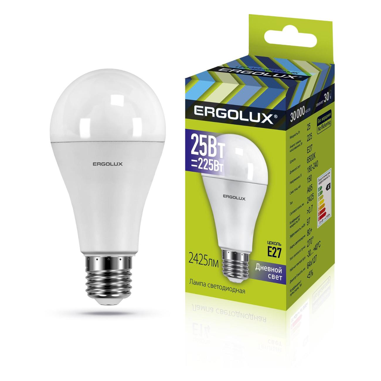 Вы можете купить Лампа Ergolux LED-A65-25W-E27-6K (10 шт.) в магазинах М.Видео по доступной цене. Лампа Ergolux LED-A65-25W-E27-6K (10 шт.): подробное описание, фото и отзывы реальных покупателей, характеристики, возможность скачать инструкции и подобрать аксессуары.