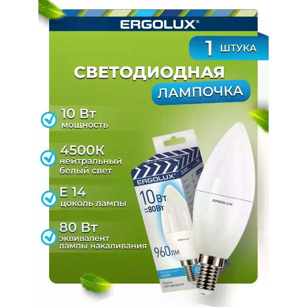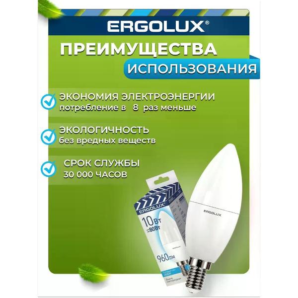 Вы можете купить Лампа Ergolux LED-C35-10W-E14-4K (10 шт.) в магазинах М.Видео по доступной цене. Лампа Ergolux LED-C35-10W-E14-4K (10 шт.): подробное описание, фото и отзывы реальных покупателей, характеристики, возможность скачать инструкции и подобрать аксессуары.