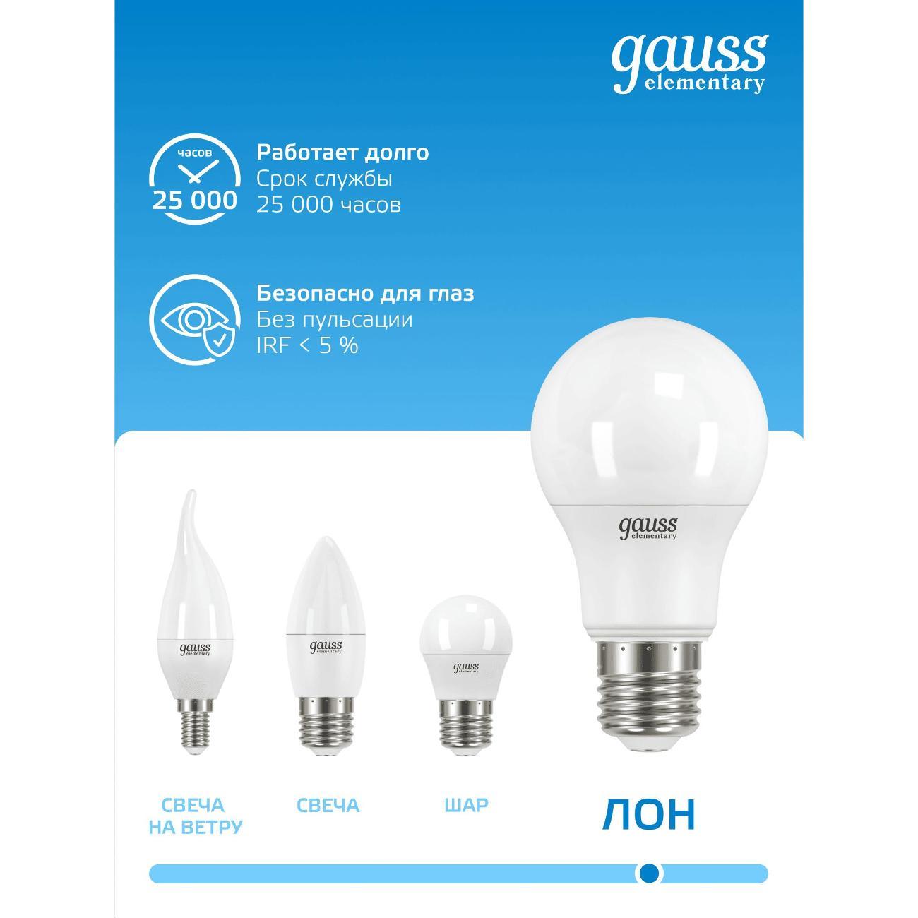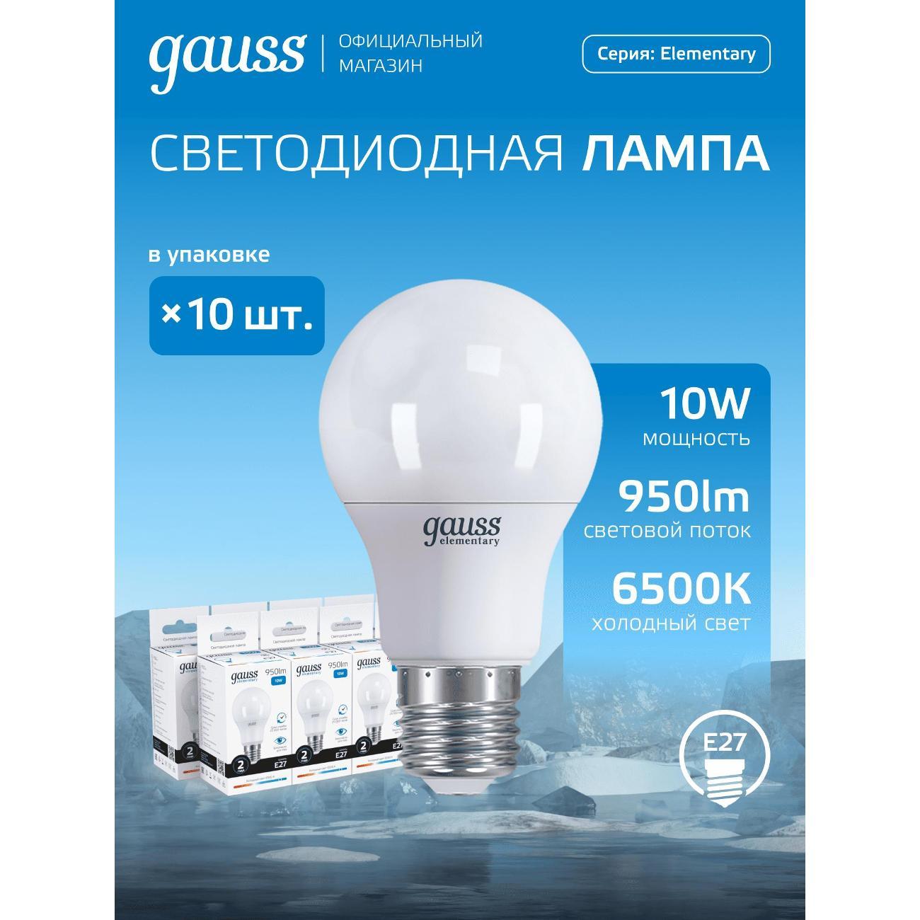 Вы можете купить Лампа Gauss Elementary A60 10W 950lm 6500K Е27 LED (10 шт.) в магазинах М.Видео по доступной цене. Лампа Gauss Elementary A60 10W 950lm 6500K Е27 LED (10 шт.): подробное описание, фото и отзывы реальных покупателей, характеристики, возможность скачать инструкции и подобрать аксессуары.