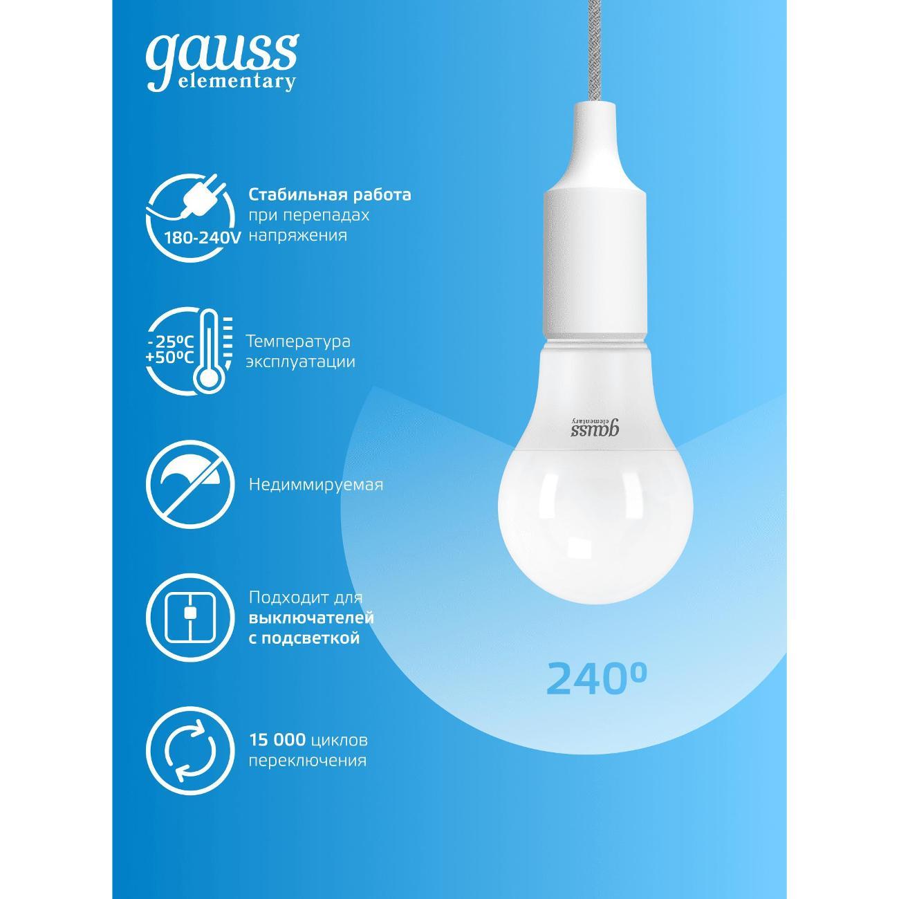 Вы можете купить Лампа Gauss Elementary A60 10W 950lm 6500K Е27 LED в магазинах М.Видео по доступной цене. Лампа Gauss Elementary A60 10W 950lm 6500K Е27 LED: подробное описание, фото и отзывы реальных покупателей, характеристики, возможность скачать инструкции и подобрать аксессуары.