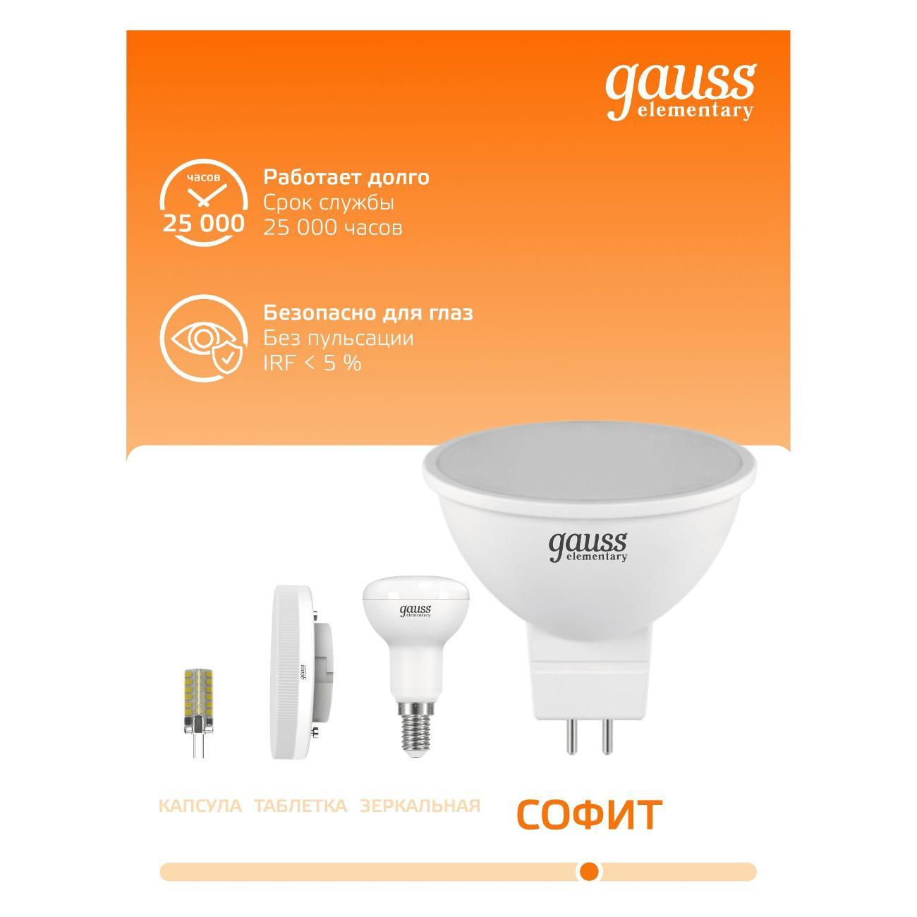 Вы можете купить Лампа Gauss Elementary MR16 9W 640lm 3000K GU5.3 в магазинах М.Видео по доступной цене. Лампа Gauss Elementary MR16 9W 640lm 3000K GU5.3: подробное описание, фото и отзывы реальных покупателей, характеристики, возможность скачать инструкции и подобрать аксессуары.