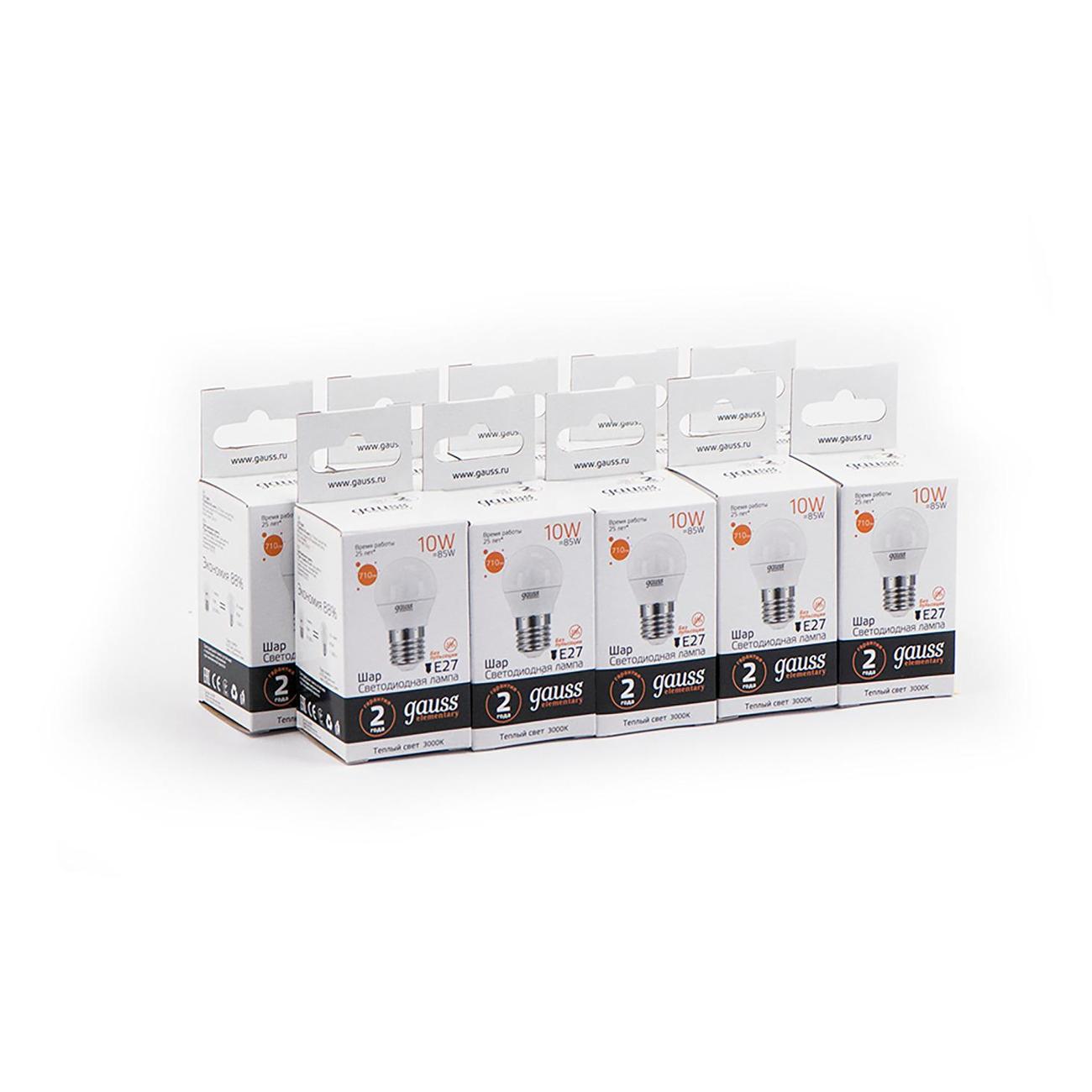 Вы можете купить Лампа Gauss Elementary Шар 10W 710lm 3000K Е27 LED (10 шт.) в магазинах М.Видео по доступной цене. Лампа Gauss Elementary Шар 10W 710lm 3000K Е27 LED (10 шт.): подробное описание, фото и отзывы реальных покупателей, характеристики, возможность скачать инструкции и подобрать аксессуары.