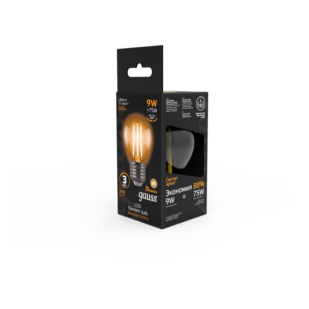 Ознакомьтесь с отзывами реальных покупателей и пользователей товара Лампа Gauss Filament Шар 9W 680lm 2700К Е27(10шт) на сайте М.Видео.