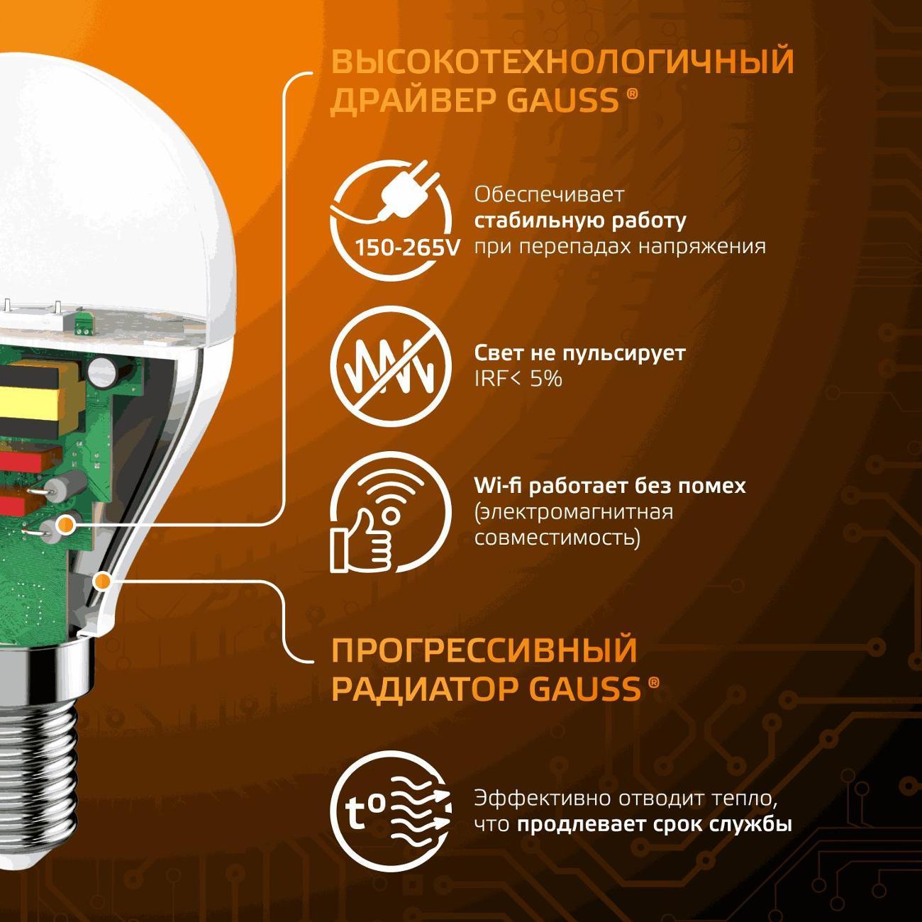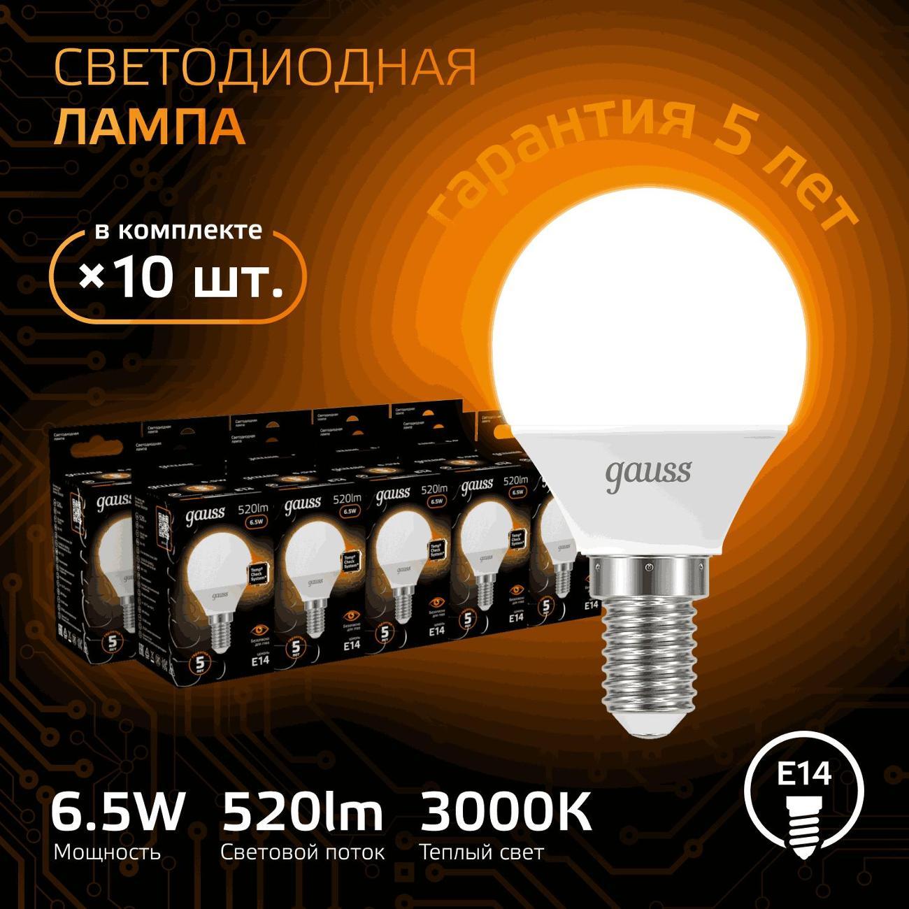 Вы можете купить Лампа Gauss Шар 6.5W 520lm 3000K E14 LED (10 шт.) в магазинах М.Видео по доступной цене. Лампа Gauss Шар 6.5W 520lm 3000K E14 LED (10 шт.): подробное описание, фото и отзывы реальных покупателей, характеристики, возможность скачать инструкции и подобрать аксессуары.