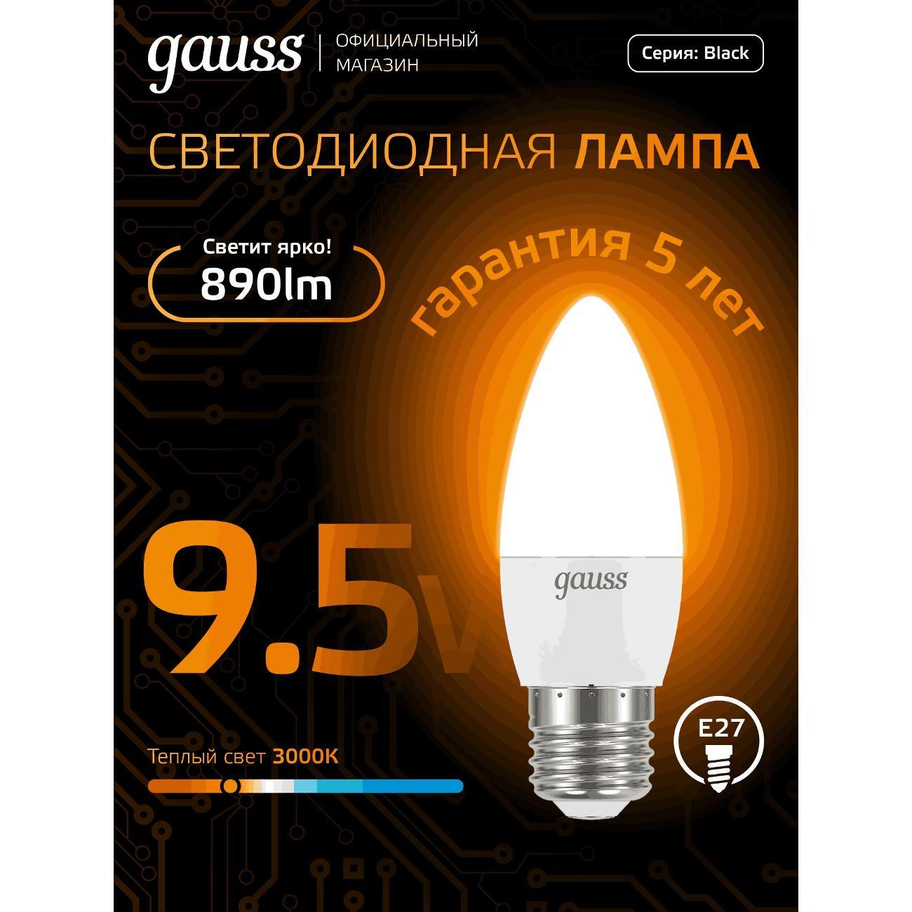 Вы можете купить Лампа Gauss Свеча 9.5W 890lm 3000К E27 в магазинах М.Видео по доступной цене. Лампа Gauss Свеча 9.5W 890lm 3000К E27: подробное описание, фото и отзывы реальных покупателей, характеристики, возможность скачать инструкции и подобрать аксессуары.