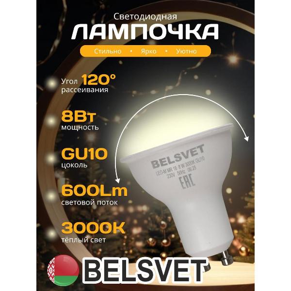 Вы можете купить Лампа LED BELSVET LED-M MR16 8W 3000K GU10 в магазинах М.Видео по доступной цене. Лампа LED BELSVET LED-M MR16 8W 3000K GU10: подробное описание, фото и отзывы реальных покупателей, характеристики, возможность скачать инструкции и подобрать аксессуары.