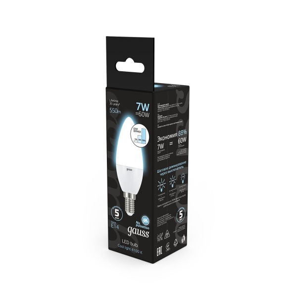 Лампа LED Gauss «Свеча» — умная диммируемая модель с возможностью регулирования яркости. Отлично подходит для торшеров, светильников и бра, где можно перед сном уменьшить световой поток для спокойного чтения или сна.