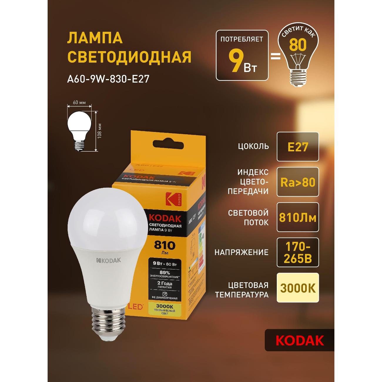 Вы можете купить Лампа LED Kodak A60-9W-830-E27 в магазинах М.Видео по доступной цене. Лампа LED Kodak A60-9W-830-E27: подробное описание, фото и отзывы реальных покупателей, характеристики, возможность скачать инструкции и подобрать аксессуары.