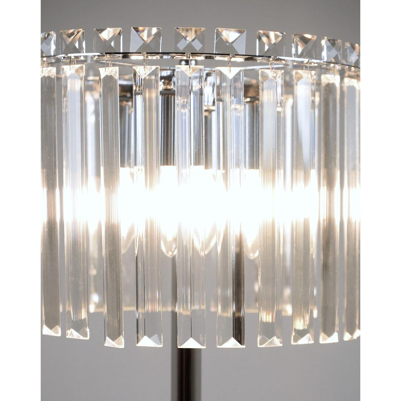 Изящная настольная лампа из коллекции Levi. Источник света украшен прозрачными вставками из стекла, которые рассеивают и создают игру света. Металлический каркас и основание дополняют образ и надежно фиксируют светильник на горизонтальной поверхности. Настольная лампа с эффектным дизайном дополнит интерьер спальни, зала или гостиной.