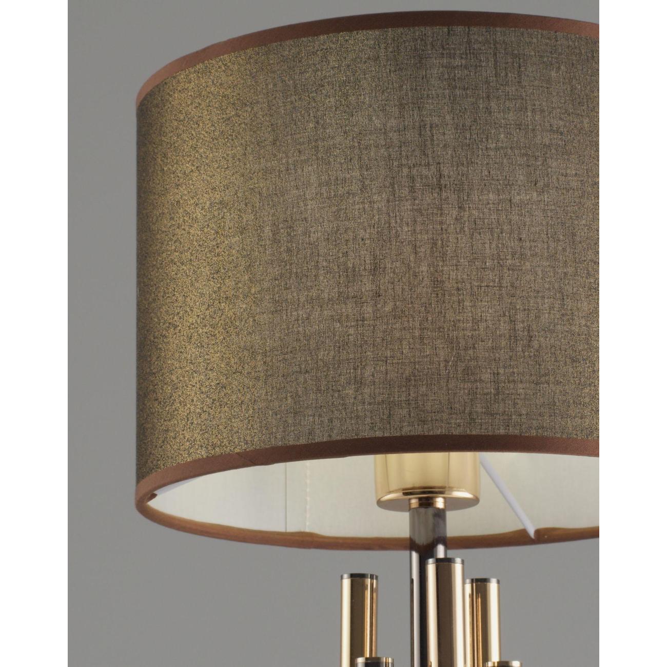 Настольная лампа из коллекции Trio в стиле модерн в золотых оттенках. Настольный торшер Moderli Trio с абажуром из тёмной ткани приглушает свет и создаёт расслабленную и комфортную обстановку. Для освещения подходят лампы накаливания или LED с цоколем E27. Каркас выполнен из металла и декорирован цилиндрическими стержнями золотого и тёмного цвета, которые придают объём и элегантный вид всей конструкции. Отличный вариант для спальни, гостиной и рабочего кабинета.