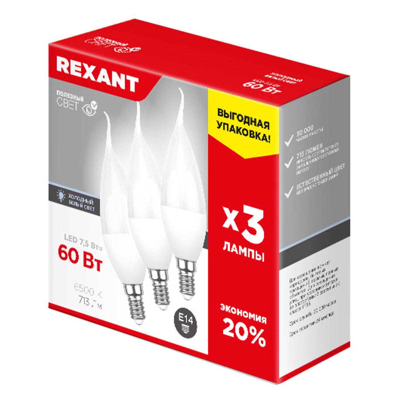 Вы можете купить Лампа Rexant CW 7.5 Вт E14 713 Лм 6500 K (3 шт.) в магазинах М.Видео по доступной цене. Лампа Rexant CW 7.5 Вт E14 713 Лм 6500 K (3 шт.): подробное описание, фото и отзывы реальных покупателей, характеристики, возможность скачать инструкции и подобрать аксессуары.