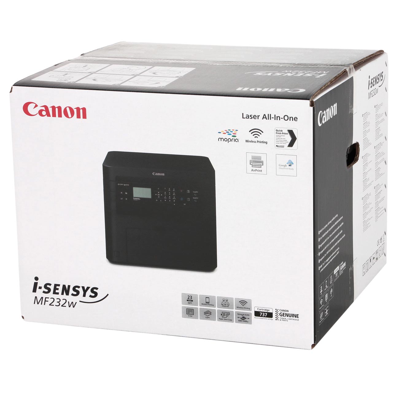Лазерное МФУ Canon MF232w подходит как для домашнего использования, так и для обслуживания индивидуального рабочего места в офисе. Оно снабжено беспроводным передатчиком Wi-Fi, позволяющим ему обмениваться информацией с удалёнными компьютерами в сети, а также со смартфонами и планшетами.