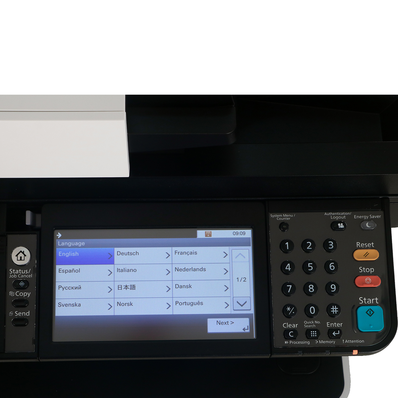 Копир за один цикл может делать до 999 копий разрешением 600х600 dpi. Поддерживается функция масштабирования от 25% до 400% с шагом 1%. Скорость передачи факса — до 33,6 Кбит. Управление функциями оргтехники возможно с помощью кнопочной панели с цифровым сенсорным дисплеем и мобильных устройств. Для подключения периферийного оборудования и внешних носителей предусмотрены порты USB, RJ45. Совместимые операционные системы — Linux, Unix, Windows, macOS.