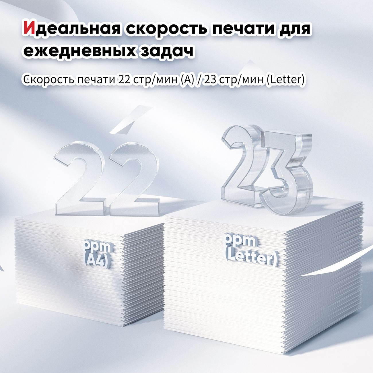 Принтер с честью выдерживает солидную нагрузку в объёме от среднемесячных 1200 до пиковых 20 000 страниц. Скорость печати и копирования составляет 22 листа в минуту. Лоток для автоподачи бумаги вмещает 150 единиц.