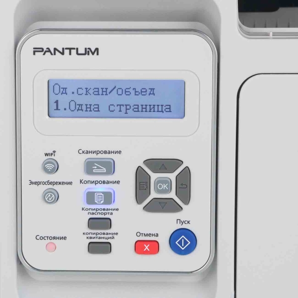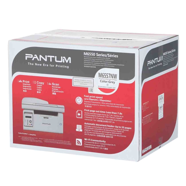 Лазерное МФУ Pantum M6557NW выполнено в сером цвете и обладает габаритными размерами 30,1х41,7х30,5 см. Вес составляет 8,5 кг. Корпус снабжен портом USB 2.0 и разъемом LAN. Панель управления кнопочная, оснащена цифровым дисплеем.
