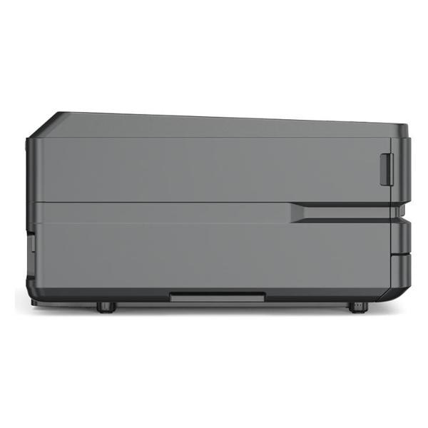Компактный настольный аппарат габаритами 376x367x192 мм оснащен устойчивыми ножками и кнопочным модулем управления со световыми индикаторами прямого беспроводного подключения, кнопок отмены, вызова меню (функции) и индикаторов состояния. Вентиляционные отверстия предупреждают перегрев корпуса во время долгих сеансов печати.