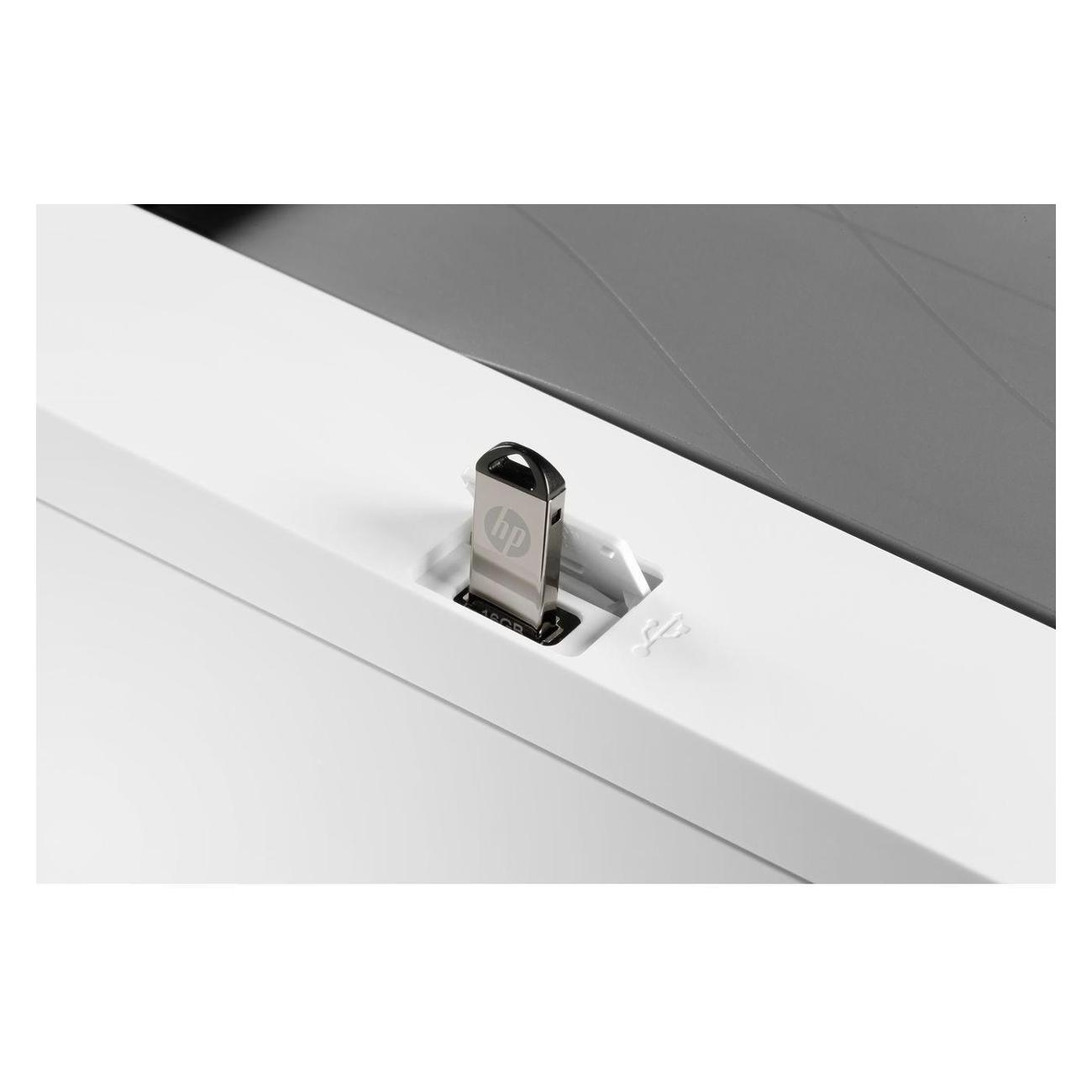 В корпусе устройства предусмотрены интерфейсы USB 2.0 для подключения к ПК и RJ45 для присоединения к локальной сети. Адаптер Wi-Fi поддерживает беспроводное подключение к устройствам для дистанционной передачи файлов в печать (по технологиям HP ePrint, Apple AirPrint, Wi-Fi Direct). Совместимые ОС — Windows 7, 8, 10, Vista. Linux и MacOS. Показатель шума во время работы принтера может достигать 50 дБ.