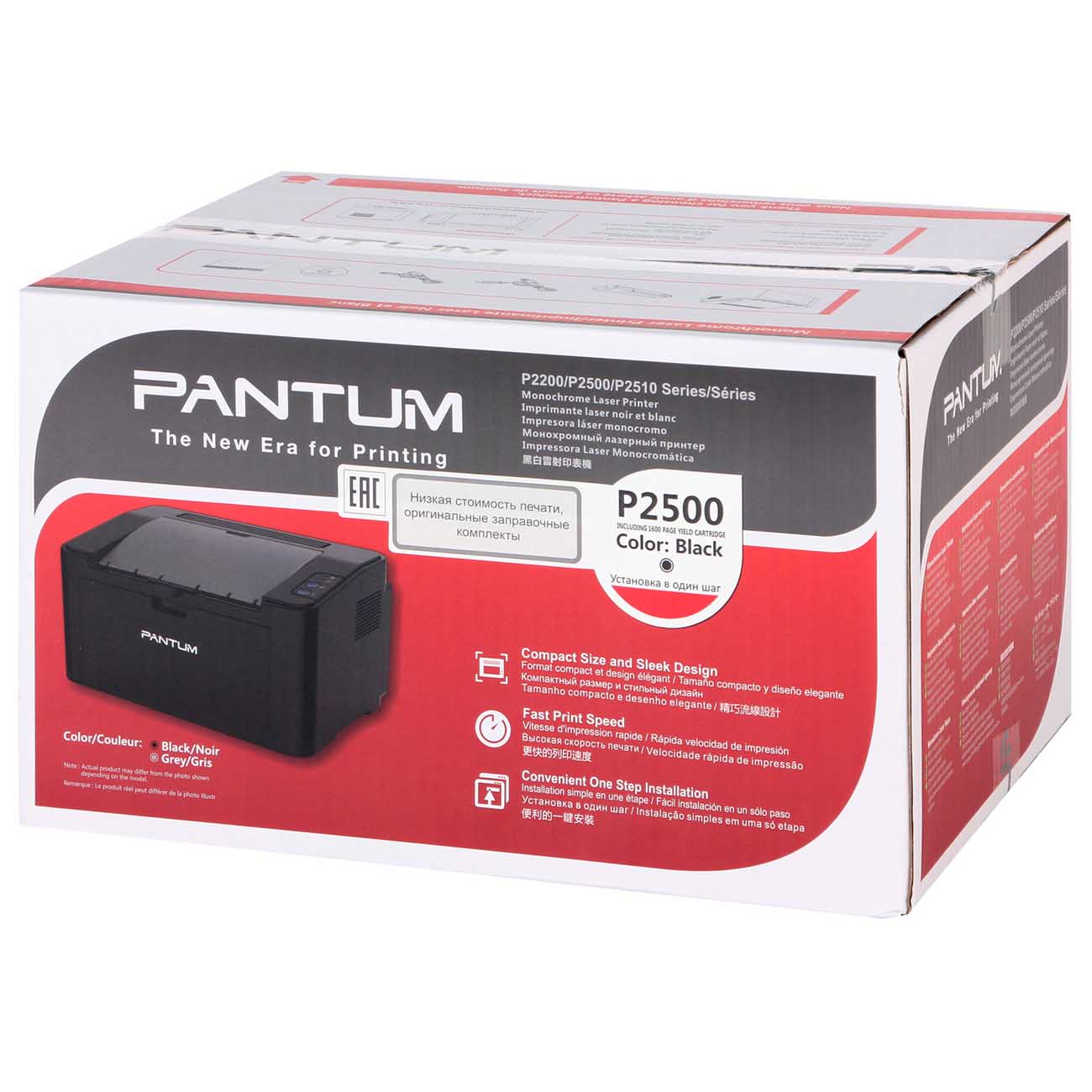 Скорость печати монохромного лазерного принтера Pantum P2500 — 22 страницы в минуту. Уровень шума — не более 52 дБ. Он рассчитан на работу с бумагой формата A4. Емкость лотка для подачи — 150 листов.