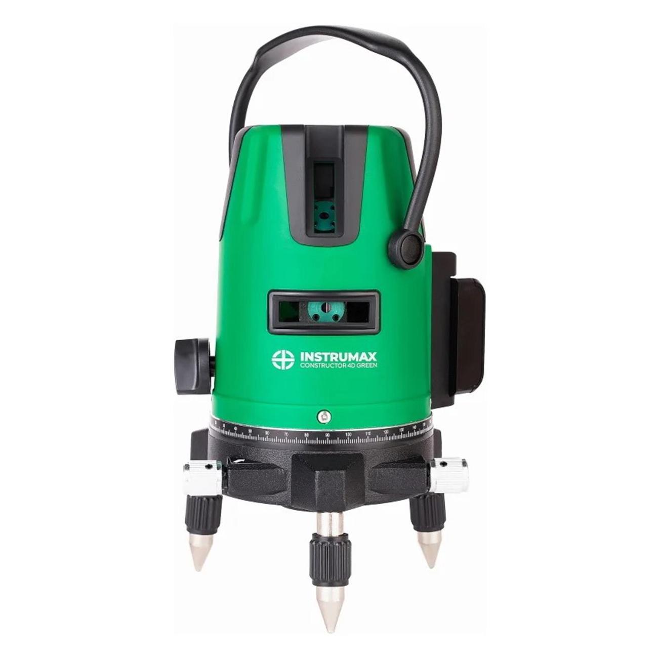 Лазерный уровень INSTRUMAX Constructor 4D GREEN IM0140 предназначен для работ внутри помещений и на улице. Строит 4 вертикальные линии (4V), 1 горизонтальную (Н), точку отвеса (D). Дополнительно на горизонтальной линии сделана лазерная точка.