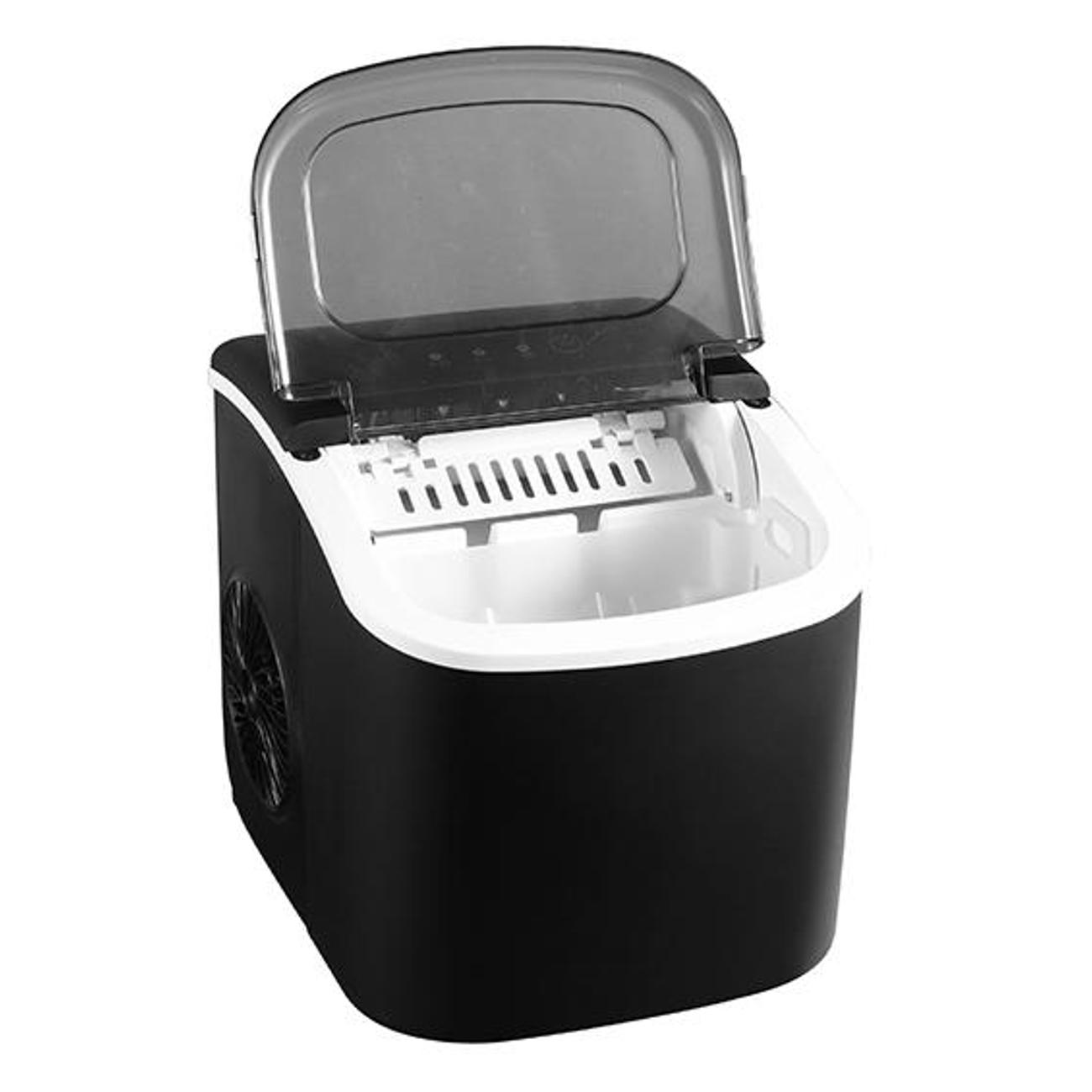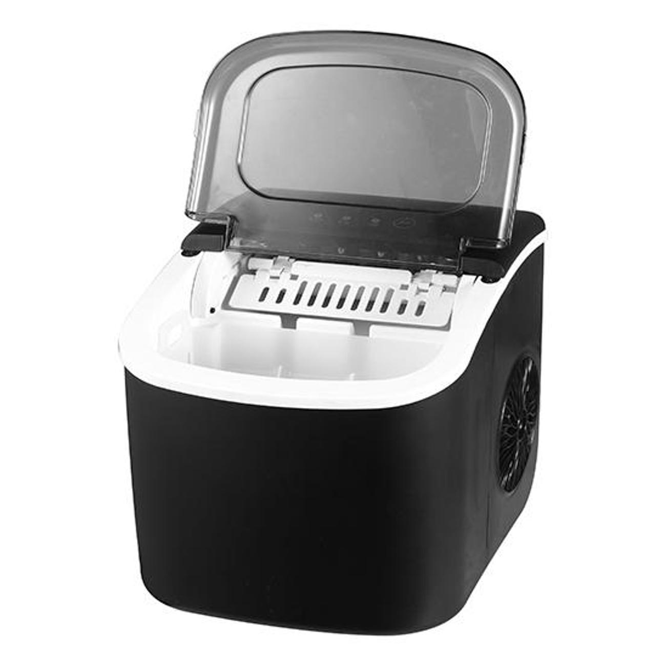 Ледогенератор Foodatlas IM-12 с откидной крышкой из прозрачного пластика обеспечивает мощность заморозки до 12 кг/сутки. Модель весом 6,2 кг, размером 29,4х29х22,5 см потребляет 0,95 кВт электроэнергии. Выработка пальчикового льда позволяет быстро охладить воду. Жидкость наливается в резервуар объемом 1,2 л. Об ее отсутствии и понижении уровня сигнализируют световые индикаторы. Готовый продукт хранится в бункере емкостью 0,6 л. При перегреве предусмотрено автоматическое отключение, что повышает безопасность использования.