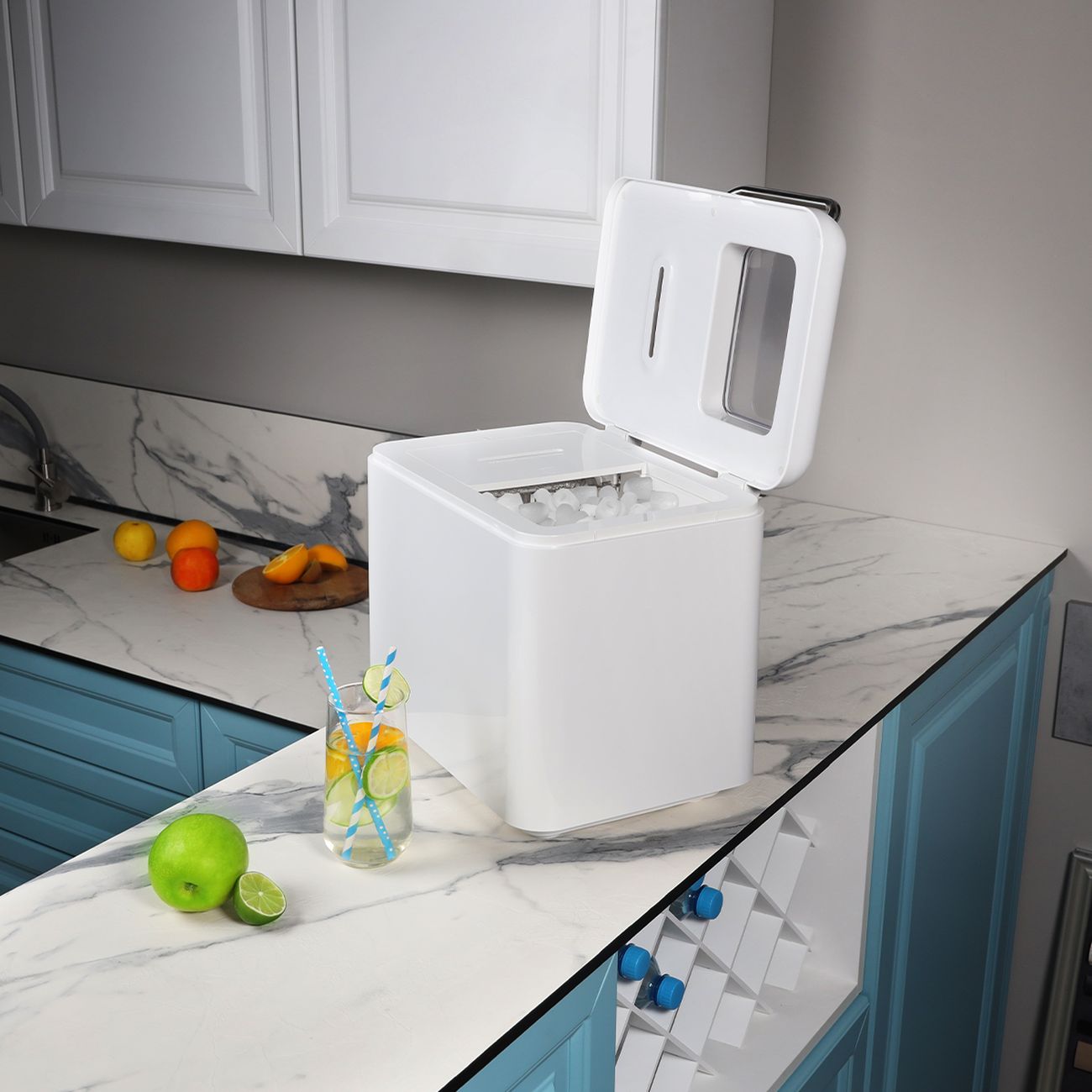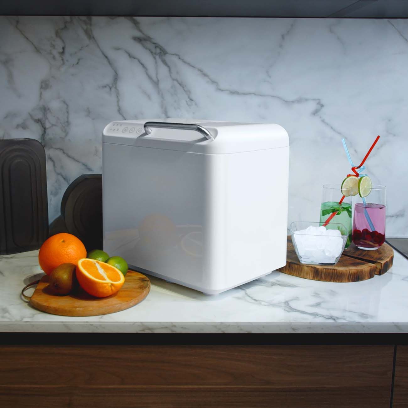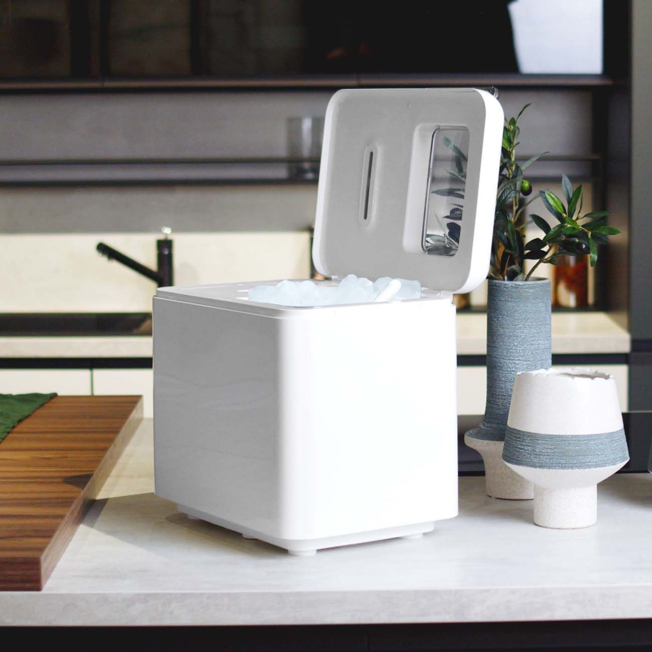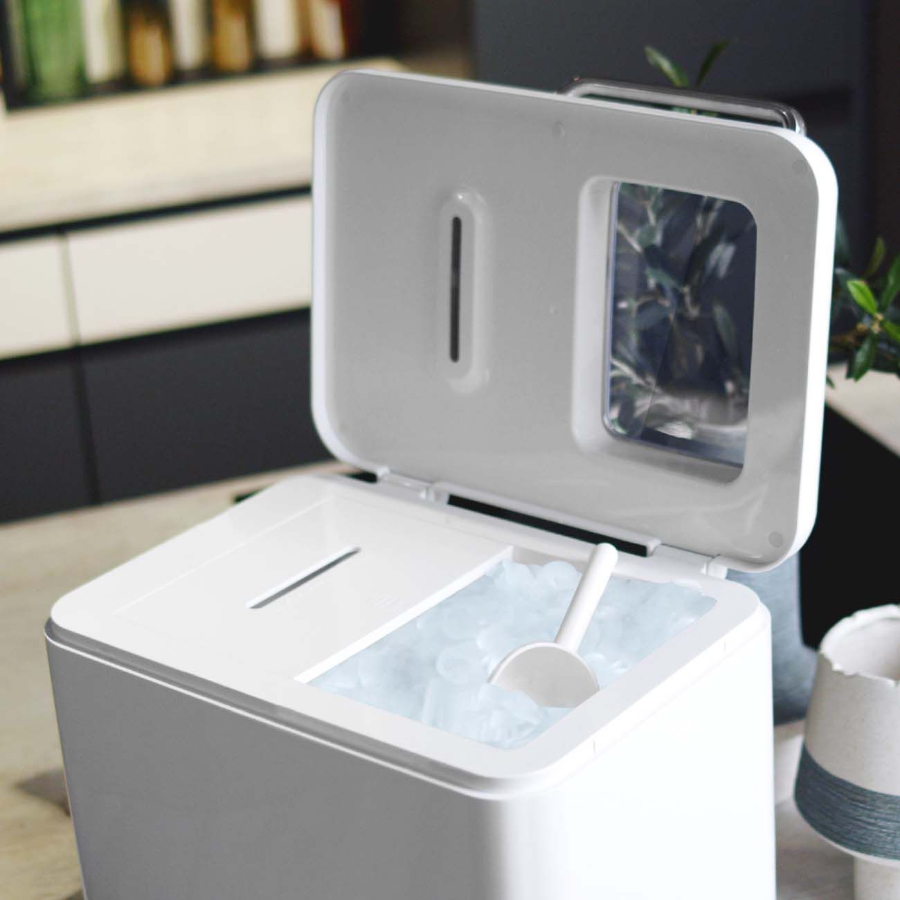 Приобрели генератор льда летом, чтобы спасаться от жары охлажденными напитками. Очень полезное устройство. Заливаешь воду и через несколько минут лед готов. На выбор 2 размера кусочков льда. Управление электронное, пользоваться максимально просто и удобно.