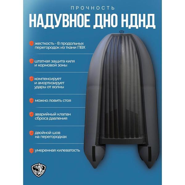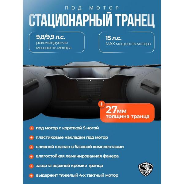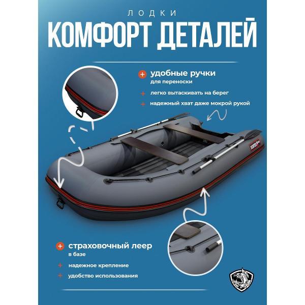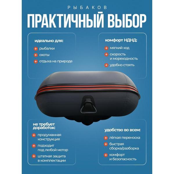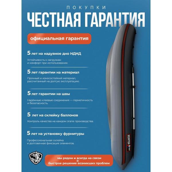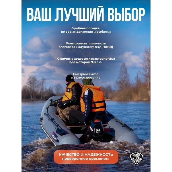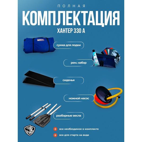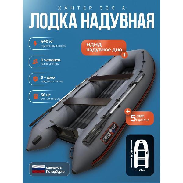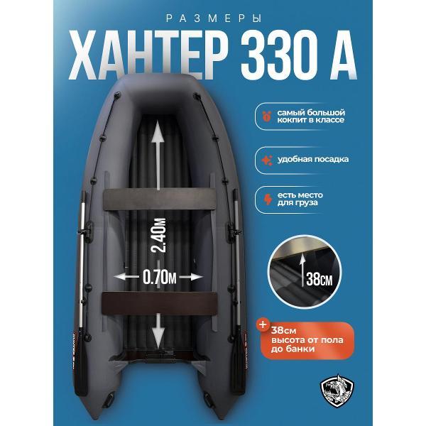 ХАНТЕР 330 А - практичная лодка ПВХ под мотор для рыбалки, отдыха на воде и выездов на небольшие и средние водоемы. Это удобная надувная лодка с надувным дном низкого давления, которая сочетает хорошую устойчивость, комфортную посадку и простую подготовку к спуску на воду. Модель подойдет тем, кто ищет надежную лодку для рыбалки под мотор с хорошей вместимостью и удобной транспортировкой.Эта лодка ПВХ рассчитана на 3 человек и грузоподъемность до 440 кг, поэтому подходит как для рыбалки вдвоем, так и для поездок с экипировкой. Лодка надувная под мотор оснащена транцем 27 мм и рассчитана под мотор до 15 л.с. За счет длины 3,30 м, баллона диаметром 0,46 м и объемного кокпита модель обеспечивает комфорт внутри и уверенное поведение на воде.ПВХ лодка изготовлена из материала плотностью 950 г/м² и имеет ряд практичных решений для повседневной эксплуатации: защиту концевиков баллона, защиту кормовой части дна, защиту киля и аварийный клапан сброса давления. Конструкция НДНД делает лодку более удобной в сборке и использовании, а базовая комплектация позволяет быстро подготовить ее к выходу на воду. В комплект входят весла, ножная помпа, ремкомплект, 2 сиденья, сумка для лодки, паспорт изделия и руководство.ХАНТЕР 330 А - это надежная моторная лодка для тех, кому нужна универсальная лодка под мотор для рыбалки и отдыха, без лишней сложности и с понятной, практичной конструкцией.
