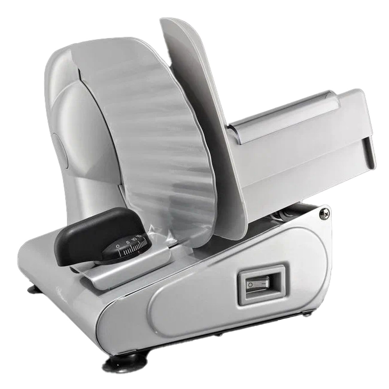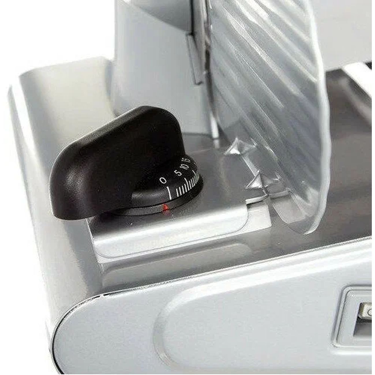 У слайсера хорошее качество сборки и использованных материалов. Отличный презентабельный вид. Простейшее управление, всего одна кнопка "включение" и поворотный рычаг для настройки толщины ломтика. Конструкция ломтерезки весьма устойчивая, резиновые ножки-присоски не позволяют скользить по столу. Для снятия ножа, чтобы помыть, не требуется какие-либо инструменты, так как в качестве отвёртки подходит любой столовый прибор (ложка, вилка и т.п.).